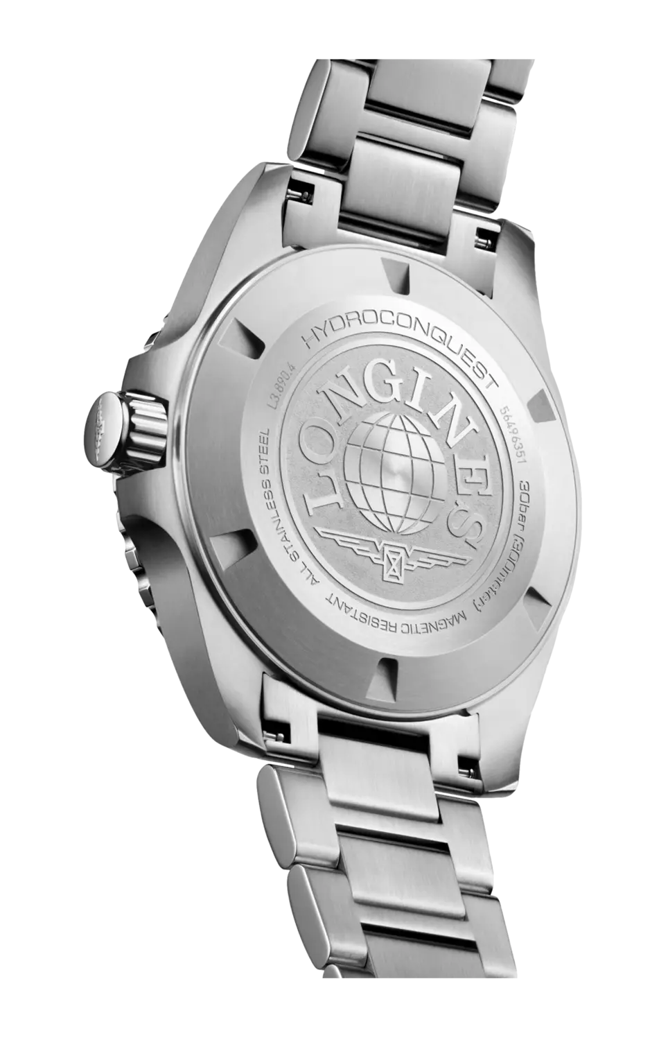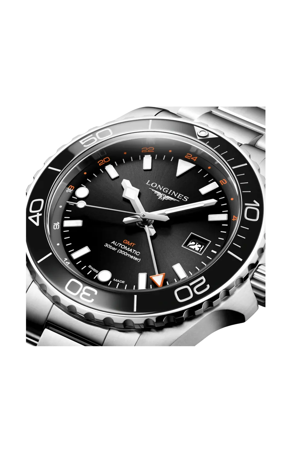 Бренд: Longines Модель Hydroconquest GMT теперь доступна с черным циферблатом диаметром 43 мм и оснащена эксклюзивным калибром Longines GMT L844.5. Он отличается высочайшей точностью и запасом хода 72 часа. Черный циферблат с отделкой в виде солнечных лучей, вращающийся в одном направлении черный керамический безель, водонепроницаемость до 30 бар (300 метров), завинчивающаяся заводная головка и завинчивающаяся задняя крышка — отличительные черты этих часов, вдохновленных миром часов. водные виды спорта. К модели прилагается браслет из нержавеющей стали.