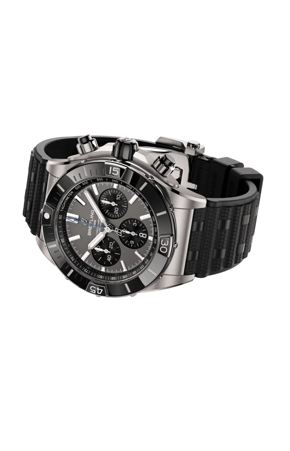 Бренд: Breitling Мощные часы Breitling для любой деятельности. Модель Super Chronomat вдохновлена оригинальным Chronomat 1980-х годов, который Breitling создал для самых смелых пилотажных эскадрилий. Более смелый, чем все часы-хрономаты, суперхрономат отличается несколькими керамическими вставками – на безеле, кнопках хронографа и заводной головке – и каучуковым ремешком, вдохновленным браслетом «Ruleaux». Это многофункциональные спортивные часы, идеальные как для спортзала, так и для торжественного вечера. Суперхрономат доступен в различных вариантах цвета и металла: от нержавеющей стали до 18-каратного красного золота и до очень легкого титана. К нему идет культовый браслет «Ruleaux» или каучуковый ремешок в стиле браслета в сочетании с раскладывающейся застежкой. Модель Super Chronomat B01 44 оснащена калибром 01 производства Breitling и является хронометром, сертифицированным COSC.
