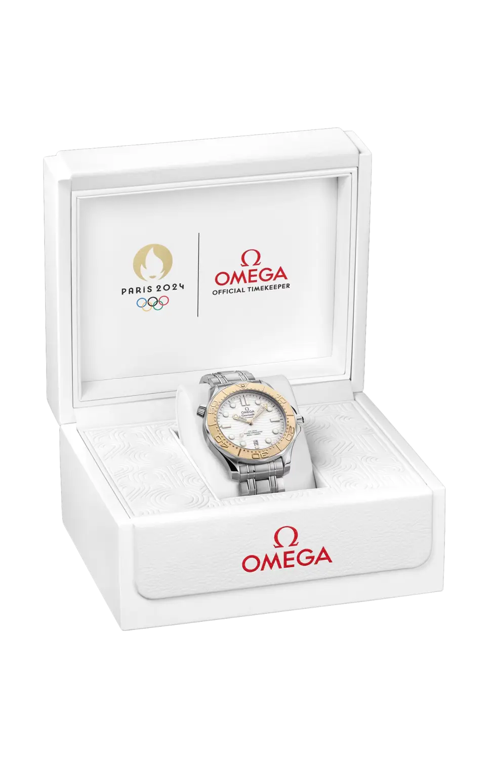 Бренд: Omega На Олимпийских играх 2024 года в Париже компания Omega в 31-й раз в своей истории будет выступать в качестве официального хронометриста. Чтобы отпраздновать это историческое событие, часы Seamaster Diver 300m имеют спортивный дизайн в официальных цветах Олимпийских игр: белом, золотом и черном. Корпус диаметром 42 мм изготовлен из нержавеющей стали и 18-каратного лунного золота, а безель украшен градуированной шкалой. Позитив с лазерным тиснением и точка Super-luminova в положении «12 часов». Под устойчивым к царапинам выпуклым сапфировым стеклом расположен белый керамический циферблат с лазерной гравировкой. матовый с блестящим волнистым рисунком и позитивным рельефом. Помимо надписей темно-серого цвета, на окошке даты в положении «6 часов» имеется типографская гравировка «Париж 2024» черного цвета. Все часовые метки выполнены из 18-каратного самогонного золота с бриллиантовой огранкой и белым суперлюминовым покрытием, а граненые стрелки покрыты PVD-покрытием из 18-каратного самогонного золота, включая центральную секундную стрелку с логотипом Парижа 2024. Памятная задняя крышка из нержавеющей стали украшена запатентованной моделью Omega Naiad. система замка и медальон с логотипом Парижа 2024 из зеркально полированного 18-каратного самогонного золота. и матовое, с нанесенной надписью «Париж 2024» и олимпийскими кольцами, также отполированными до зеркального блеска на матовой структуре. Часы сопровождаются браслетом из нержавеющей стали, оснащенным системой быстрой замены Omega и застежкой. Запатентованный выдвижной складной пистолет с кнопкой. -Застежка на пуговицы и подводное удлинение. Часы оснащены механизмом Omega Co-Axial Master Chronometer 8800 и продаются в специальной коробке.