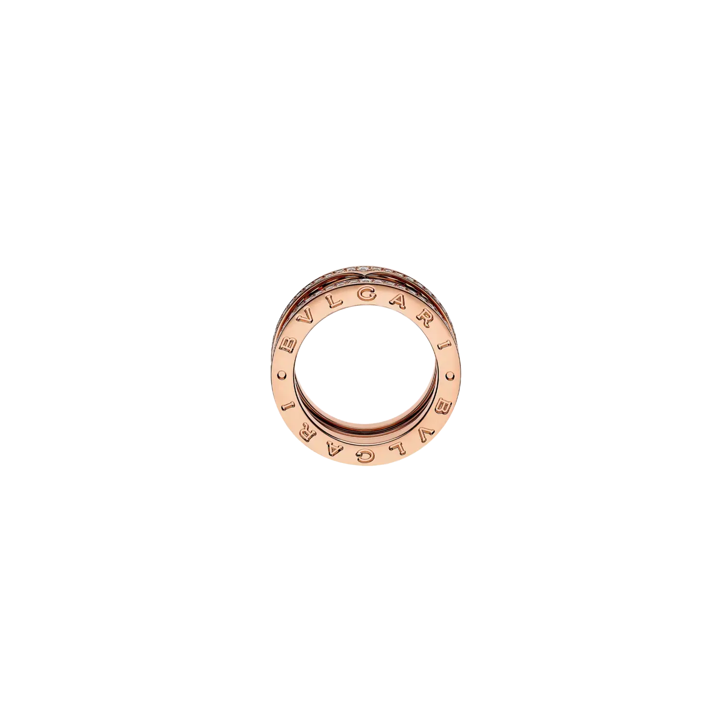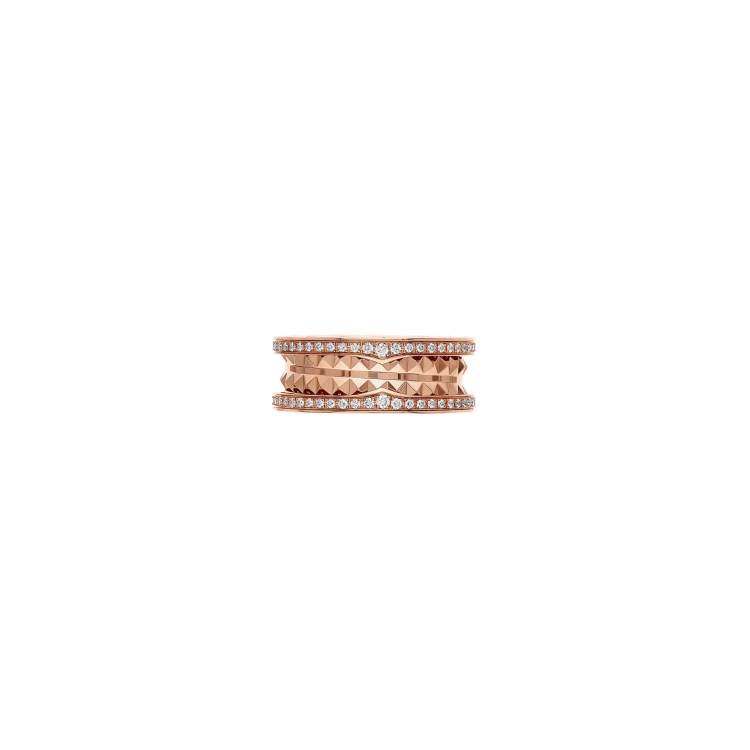 Двухполосное кольцо b.zero1 из розового золота 18 карат с бриллиантовым паве по внешним профилям и спиралью с заклепками.