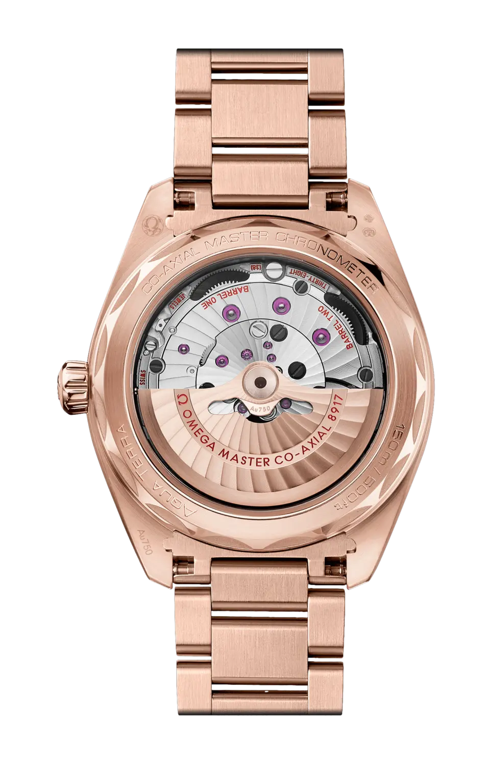 Бренд: Omega Seamaster Aqua Terra — это исключительная дань богатому морскому наследию Omega. В этой модели диаметром 41 мм симметричный корпус выполнен из 18-каратного золота седны, а задняя крышка имеет волнистый край. Сине-серый циферблат с сатинированной отделкой в виде солнечных лучей украшен горизонтальным узором из тикового дерева, имеет окошко даты в положении «6 часов» и малый опаловый счетчик секунд с кольцом из 18-каратного золота Sedna. Дизайн дополняют стрелки и метки из 18-каратного золота седна с белым люминесцентным покрытием, а также минутная и секундная шкалы на пескоструйной обработке циферблата и дополнительных циферблатов. Эти часы дополнены полированным и сатинированным браслетом и оснащены коаксиальным мастер-хронометром Omega калибра 8917, сертифицированным Швейцарским федеральным институтом метрологии (Metas) в соответствии с самыми высокими стандартами, установленными часовой промышленностью.