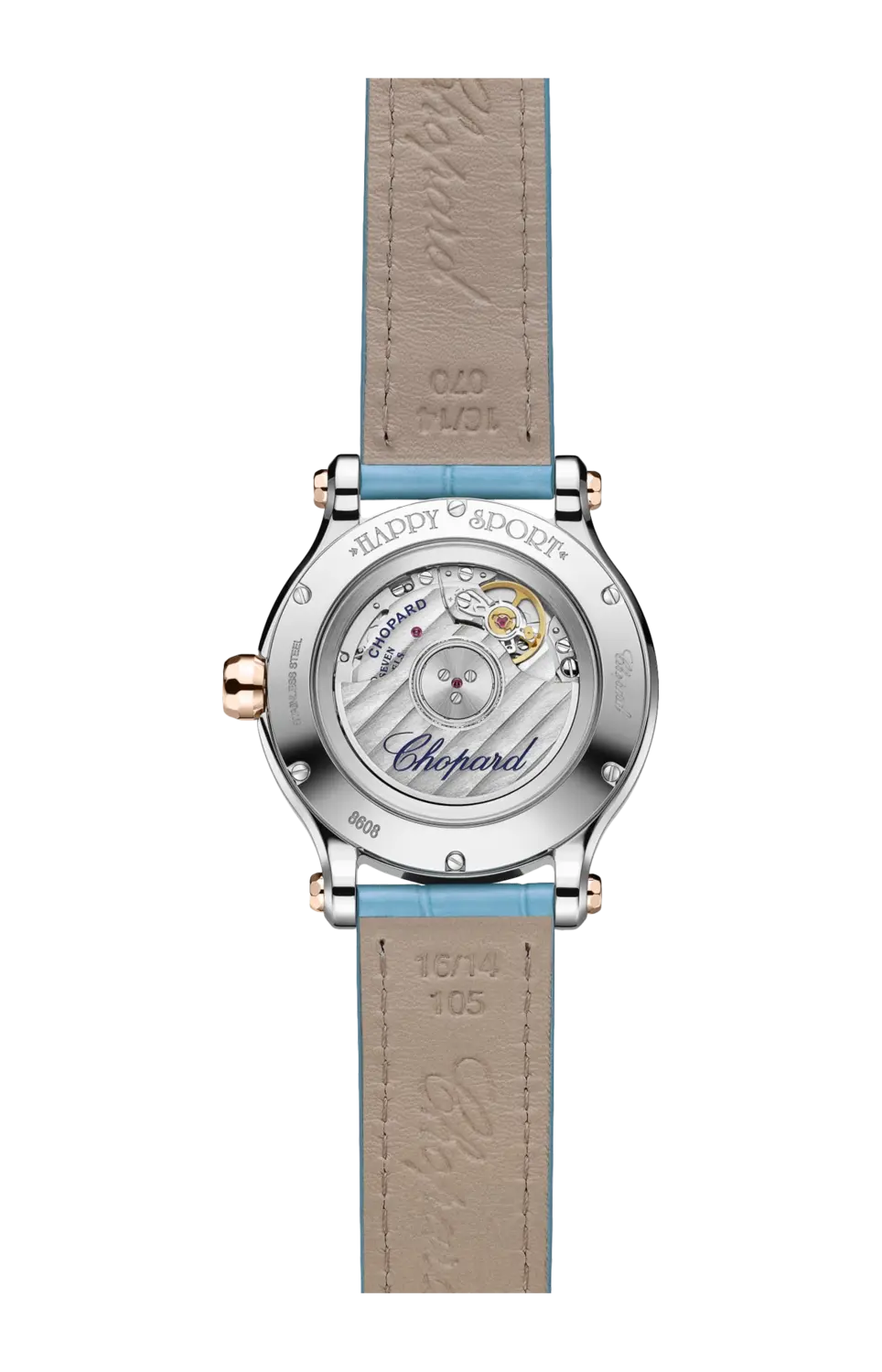 Коллекция Happy Sport является символом креативности и смелости Chopard. Его игривые драгоценные камни, которые свободно вращаются, танцуя между двумя сапфировыми стеклами, захватывают воображение с 1993 года, когда Chopard стал первым домом, сочетающим сталь и бриллианты. Опыт компании Chopard в области часового производства позволил оснастить часы Happy Sport 33 мм механическим механизмом с автоподзаводом, разработанным специально для женских корпусов. Маленькие бриллианты делают большие дела