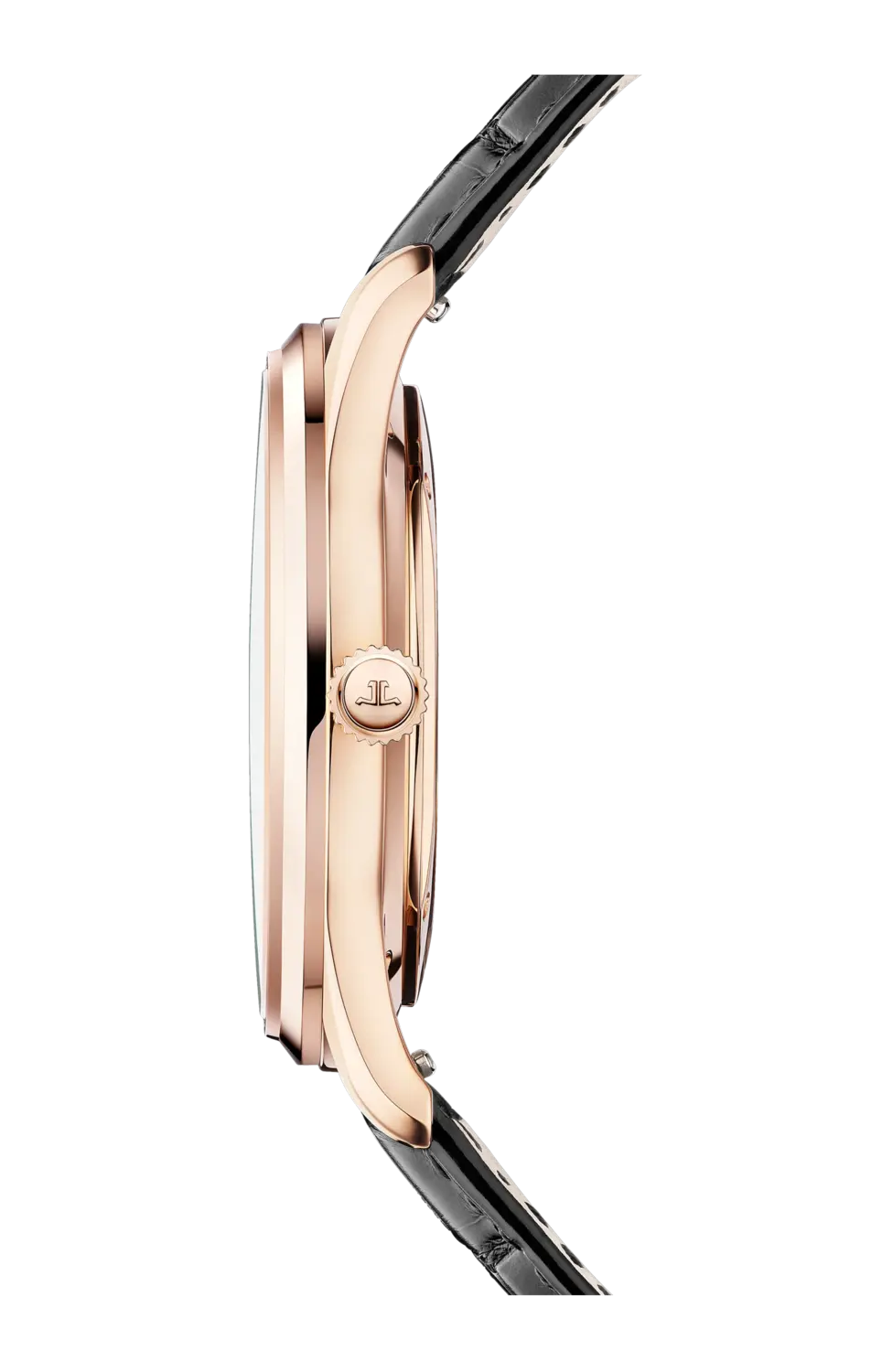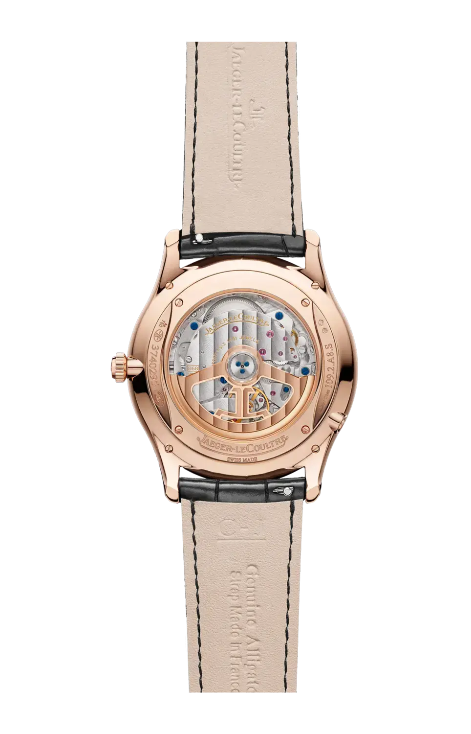 Бренд: Jaeger-Lecoultre Возвращая смелую эстетику одноименной коллекции, модель Master Ultra Thin Perpetual Calendar имеет циферблат цвета яичной скорлупы в сочетании с корпусом из розового золота, который элегантно контрастирует с черным ремешком из кожи аллигатора, чрезвычайно удобным в ношении. Золотые стрелки с двойной сатинированной отделкой и синяя центральная секундная стрелка парят над тремя дополнительными циферблатами, указывая дату в положении «3 часа», день недели в положении «9 часов» и месяц в положении «6 часов». Индикатор фазы в полдень и вечный календарь. Эти изысканные часы с усложнением оснащены мануфактурным калибром 868 с запасом хода 70 часов.