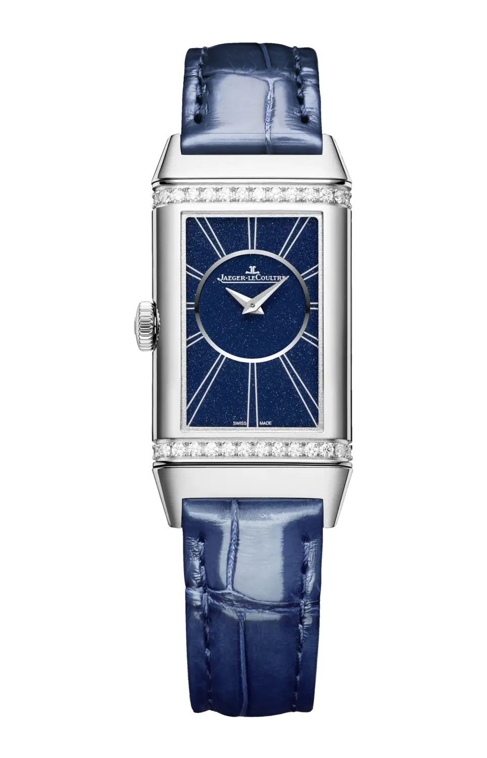Эти часы получили свое название благодаря концепции дуэта, которая при одном прикосновении пальцев демонстрирует два лица и двойную пару стрелок, оживляемых одним движением. Модель Reverso One Duetto, выполненная из нержавеющей стали, также отличается двойным рядом бриллиантов классической огранки, расположенными на передней и задней части часов. Ярко-синий кожаный ремешок дополняет эти красивые часы в стиле ар-деко.
