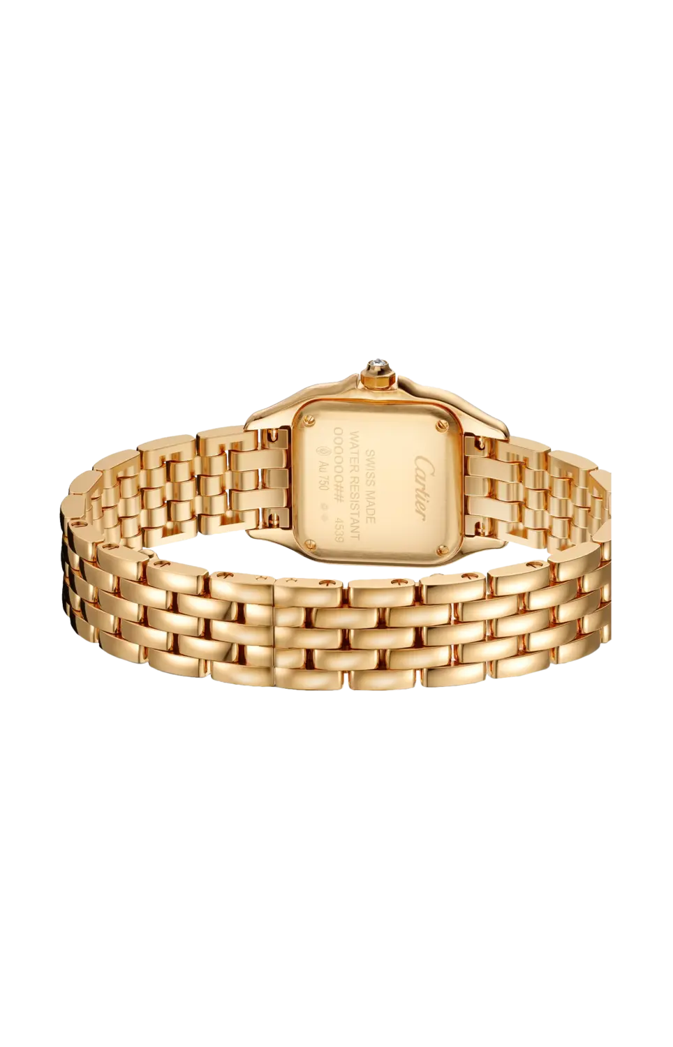 Технические характеристики: Коллекция: PANTHÈRE Категория: ONLY TIME Механизм: Кварцевый Размеры корпуса: диаметр 30,3 X 22 мм Материал: Желтое золото Ремешок: Желтое золото Водонепроницаемость: 3 АТМ Циферблат: Серебро, Бриллианты Стекло: САПФИР Для кого: Женщин