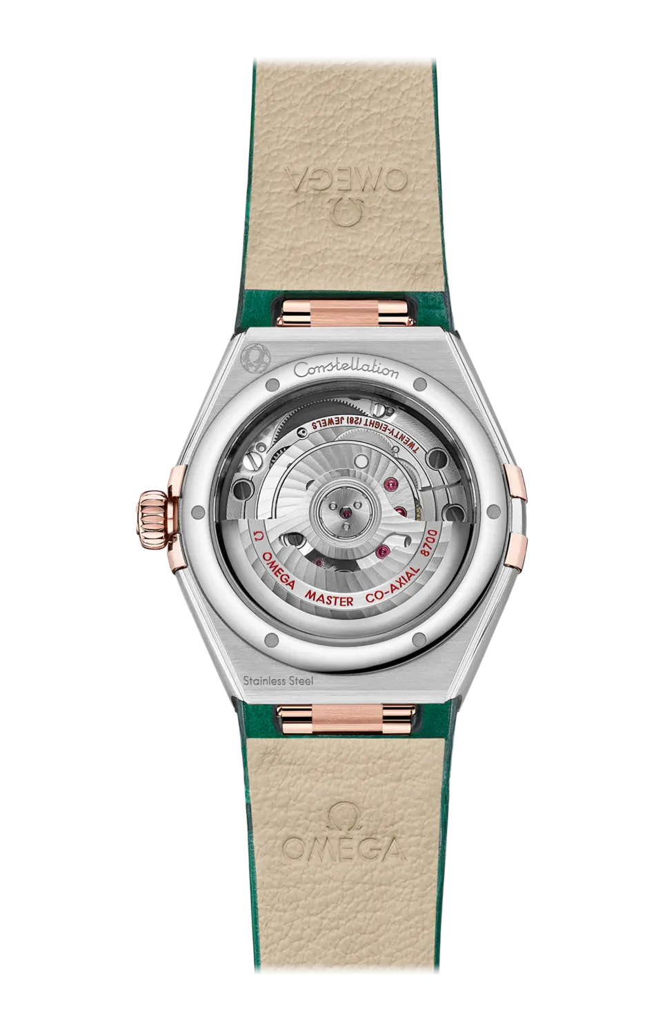 Бренд: Omega Необычный дизайн коллекции Omega Constellation, рассчитанный на долгие годы, характеризуется знаменитыми серповидными гранями и «зубцами» на корпусе. Эта модель диаметром 29 мм отличается циферблатом из натурального зеленого авантюрина и соответствующим ремешком из блестящей кожи. Изготовлен из нержавеющей стали и 18-каратного золота, он оснащен безелем с выгравированными римскими цифрами и окошком даты в положении «6 часов». Стрелки, часовые метки, Логотип Omega и звезда Constellation выполнены из 18-каратного золота Sedna. Часы бьются в ритме коаксиального хронометра Omega Master Chronometer 8700, который виден сквозь устойчивое к царапинам куполообразное сапфировое стекло.