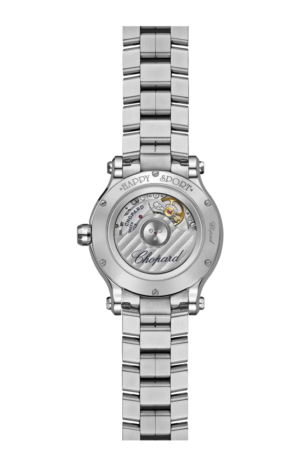 Коллекция Ahppy Sport — это символ креативности и смелости Chopard. Его игривые, свободно вращающиеся драгоценные камни, танцующие между двумя сапфировыми стеклами, захватывают воображение с 1993 года, когда Chopard стал первым домом, сочетающим сталь и бриллианты. Опыт компании Chopard в области часового производства позволил оснастить Happ Sport 33 мм механическим калибром с автоматическим подзаводом, разработанным специально для женских корпусов. Маленькие бриллианты творят великие дела