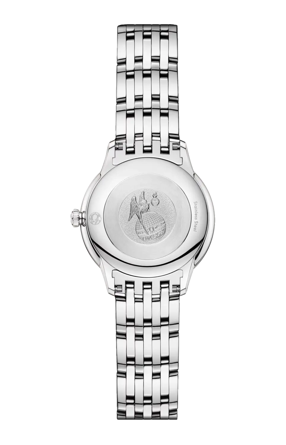 Технические характеристики: Коллекция: DE VILLE Категория: ONLY TIME Механизм: Кварцевый Размеры корпуса: диаметр 27,25 мм Материал: Сталь Ремешок: Сталь Водонепроницаемость: 3 ATM Циферблат: БЕЛЫЙ Стекло: САПФИР Для кого: Женщин