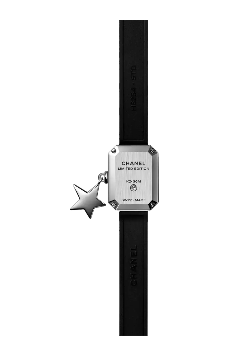 Блестящий черный лакированный циферблат. Подвеска-звезда с бриллиантами, похожая на талисман на запястье. Звездная интерпретация премьерных часов ограниченной серии.