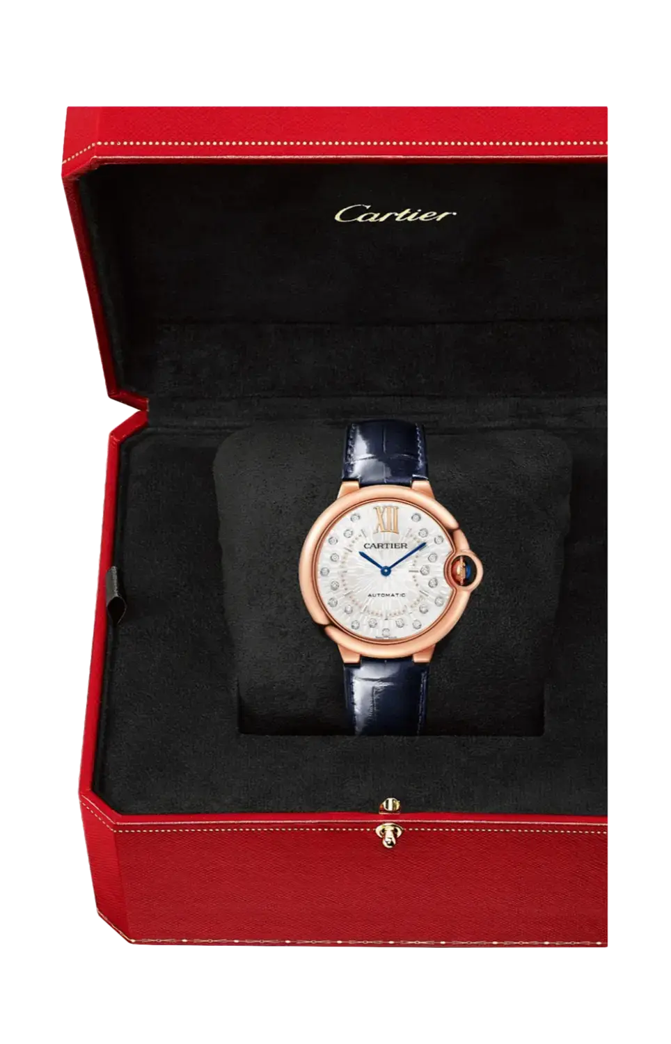 Технические характеристики: Коллекция: BALLON DE CARTIER Категория: ONLY TIME Механизм: Автоматический Размеры корпуса: диаметр 36 мм Материал: Розовое золото Ремешок: Кожа аллигатора Водонепроницаемость: 3 атм Циферблат: Серебро Стекло: САПФИР Застежка: МЕДВЕДЬ Для кого: Женщины
