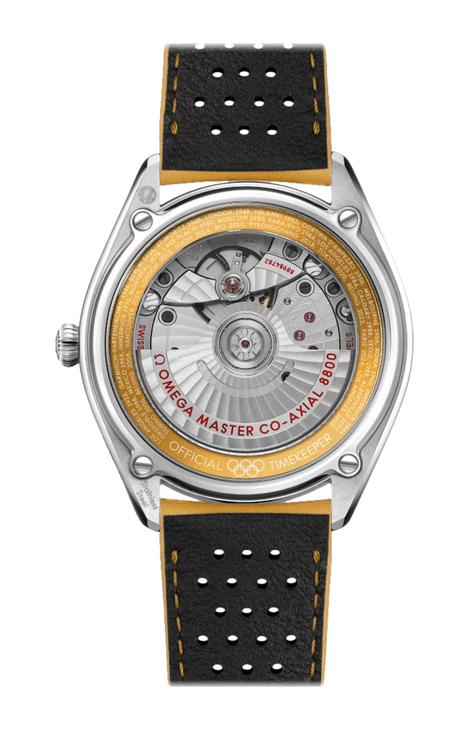 Бренд: Omega Коллекция Seamaster Olympic Games вдохновлена кольцами Олимпийских игр и дизайном исторических хронометров Omega. Эта модель диаметром 39,5 мм имеет корпус из нержавеющей стали и желтый кожаный ремешок с микроперфорацией. Выпуклый черно-белый циферблат оснащен спортивными стрелками, окошком даты и легко читаемой минутной шкалой, а также желтым счетчиком пульса, который позволяет владельцу подсчитывать количество импульсов в минуту. На задней крышке имеется желтое алюминиевое кольцо с анодированным покрытием. все города и даты, в которые проходили Олимпийские игры, приуроченные Omega: от Лос-Анджелеса 1932 года до Лос-Анджелеса 2028 года. мастер-хронометр калибра 8800. Всего было выпущено 2032 экземпляра этой модели, на корпусе которой выгравирован номер ограниченной серии.