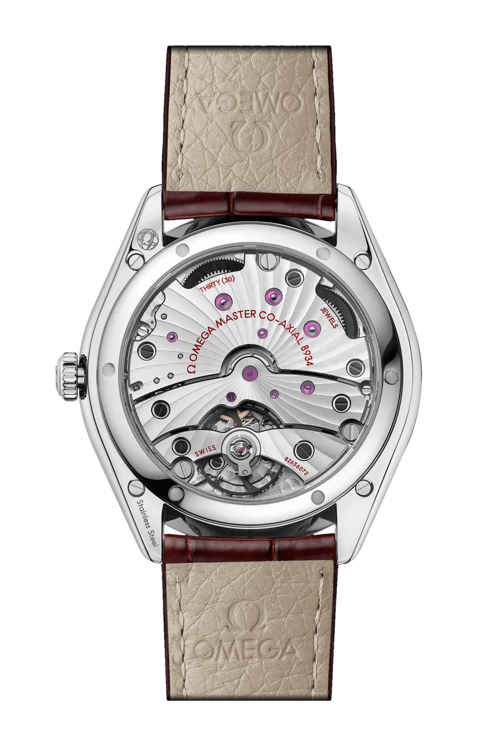 Бренд: Omega Линия Trésor, отличающаяся элегантным и тонким корпусом, была впервые выпущена компанией Omega в 1949 году и оснащена легендарным калибром 30 мм. Спустя более полувека эта модель продолжает завоевывать сердца энтузиастов благодаря одному из самых передовых на сегодняшний день механических механизмов. Эта модель дополнена бордовым кожаным ремешком и имеет корпус диаметром 40 мм из полированной нержавеющей стали и безель, инкрустированный бриллиантовым паве. огранка бриллиантов. Выпуклый бордовый циферблат включает в себя счетчик запаса хода в положении «12 часов» и малый счетчик секунд в положении «6 часов», а также выпуклые стрелки и индексы из 18-каратного белого золота, оснащенные коаксиальным хронометром Omega Master Chronometer 8934. de ville, они сертифицированы по самым высоким отраслевым стандартам с точки зрения точности, хронометрических характеристик и устойчивости к магнитным полям.