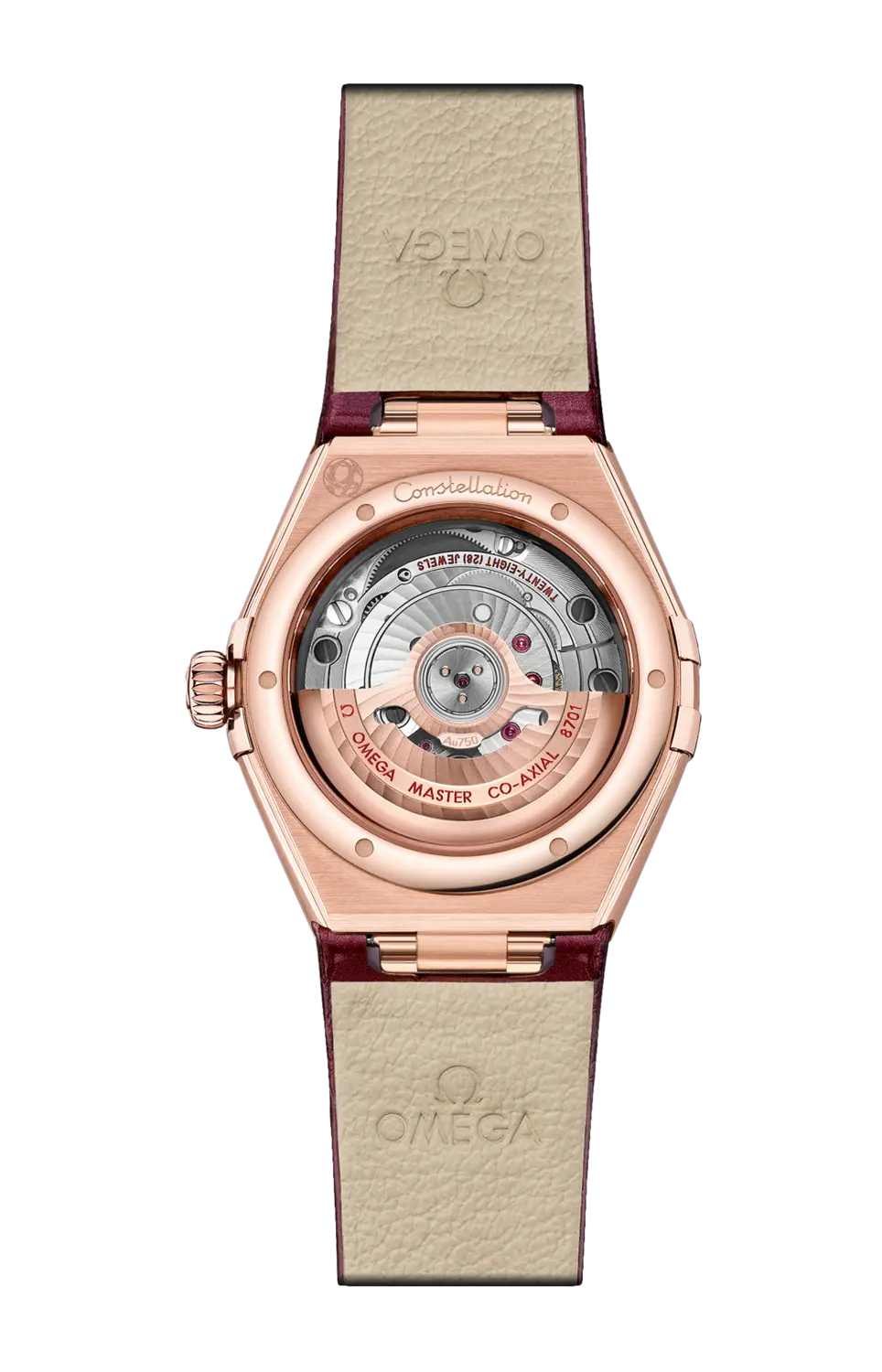 Бренд: Omega Необычный дизайн коллекции Omega Constellation, рассчитанный на долгие годы, характеризуется знаменитыми серповидными гранями и «зубцами» на корпусе. Эта модель диаметром 29 мм из 18-каратного золота седна оснащена безелем с бриллиантовым паве, напоминающим матовую ткань. Переливающийся перламутровый циферблат с бриллиантовыми часовыми метками и окошком даты в положении «6 часов». Стрелки, логотип Omega, звезда созвездия и бриллиантовая оправа. также из 18-каратного золота седна. Легендарный браслет с монокольцом заменен на мерцающий бордовый кожаный ремешок. Часы бьются в ритме коаксиального хронометра Omega Master Chronometer 8701, который виден сквозь устойчивое к царапинам куполообразное сапфировое стекло.