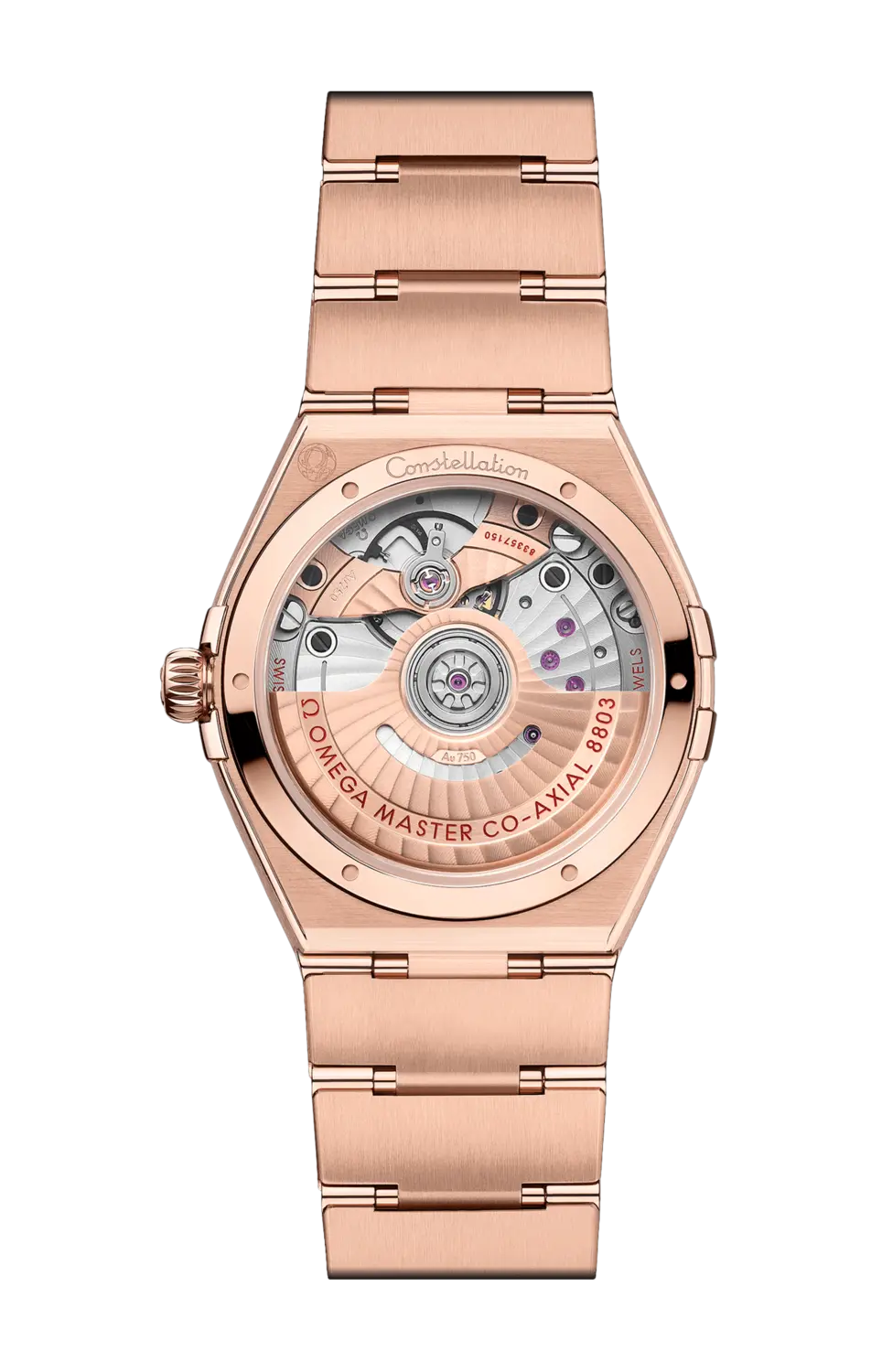Бренд: Omega Необычный дизайн коллекции Omega Constellation, рассчитанный на долгие годы, характеризуется знаменитыми серповидными гранями и «зубцами» по бокам корпуса. Эта модель диаметром 34 мм из 18-каратного золота седна оснащена безелем, усыпанным бриллиантами. Бордовый циферблат с сатинированной отделкой в виде солнечных лучей и круглым окошком даты в положении «6 часов». Часовые метки с прогрессивными бриллиантами установлены в золотых держателях. 18-каратный седна, малый секундный счетчик и центральные минутные кольца также изготовлены из 18-каратного золота седна и инкрустированы бриллиантами. В сочетании с культовым браслетом «моно-звонок» с застежкой-бабочкой и удобной системой регулировки часы бьются в такт Omega. Коаксиальный калибр Master Chronometer 8803, видимый сквозь устойчивое к царапинам выпуклое сапфировое стекло.