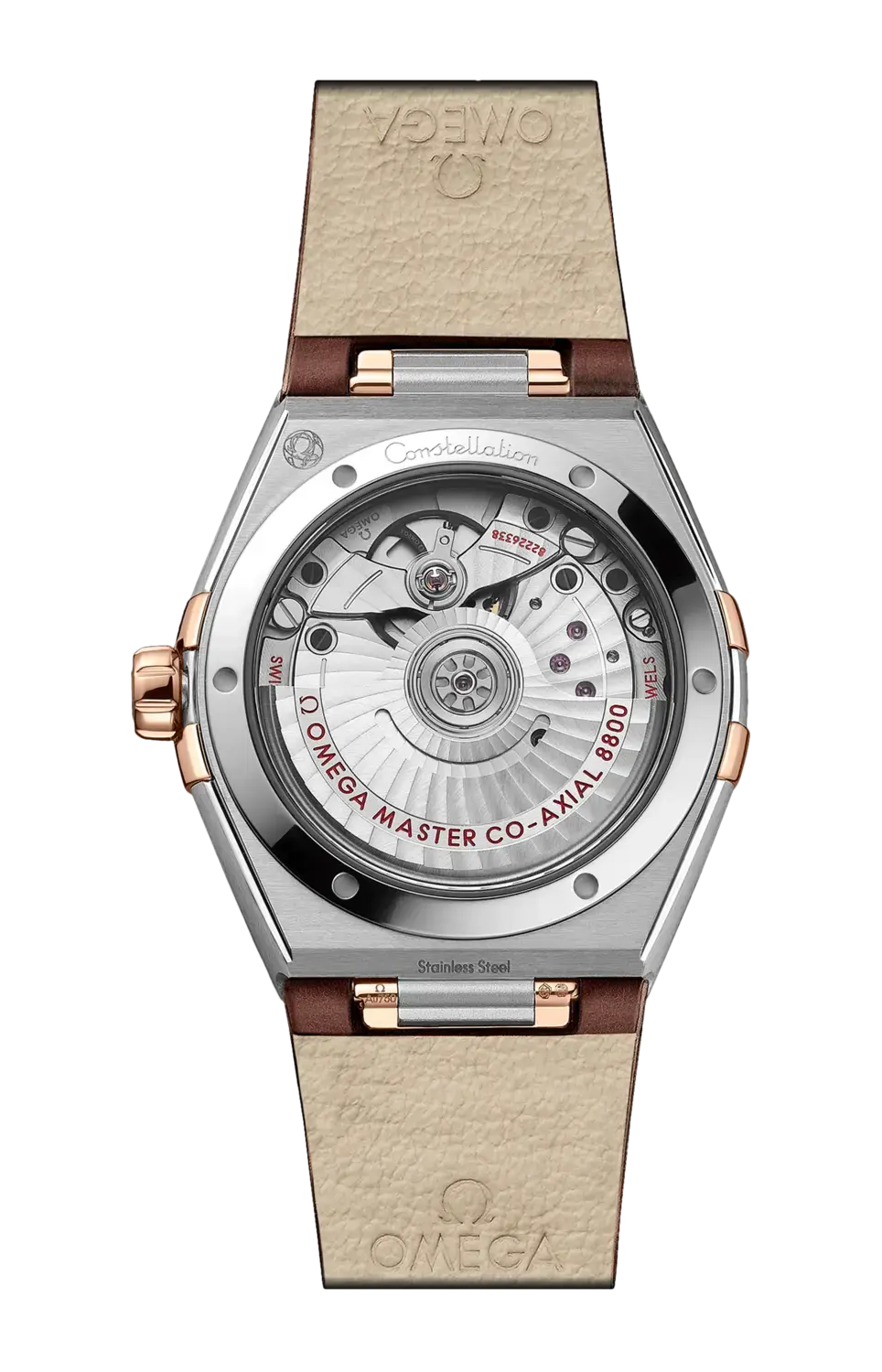 Бренд: Omega Необычный дизайн коллекции Omega Constellation, рассчитанный на долгие годы, характеризуется знаменитыми серповидными гранями и «зубцами» на корпусе. Эта модель диаметром 36 мм из нержавеющей стали и 18-каратного золота sedna оснащена полированным безелем, инкрустированным 38 бриллиантами, коричневым циферблатом с PVD-покрытием и окошко даты в положении «6 часов». Стрелки, логотип Omega, звезда созвездия и индексы. все из 18-каратного золота седна. Легендарный браслет с монокольцом заменен кожаным ремешком того же цвета, что и циферблат. Часы бьются в ритме коаксиального хронометра Omega Master Chronometer 8800, который виден сквозь устойчивое к царапинам сапфировое стекло.