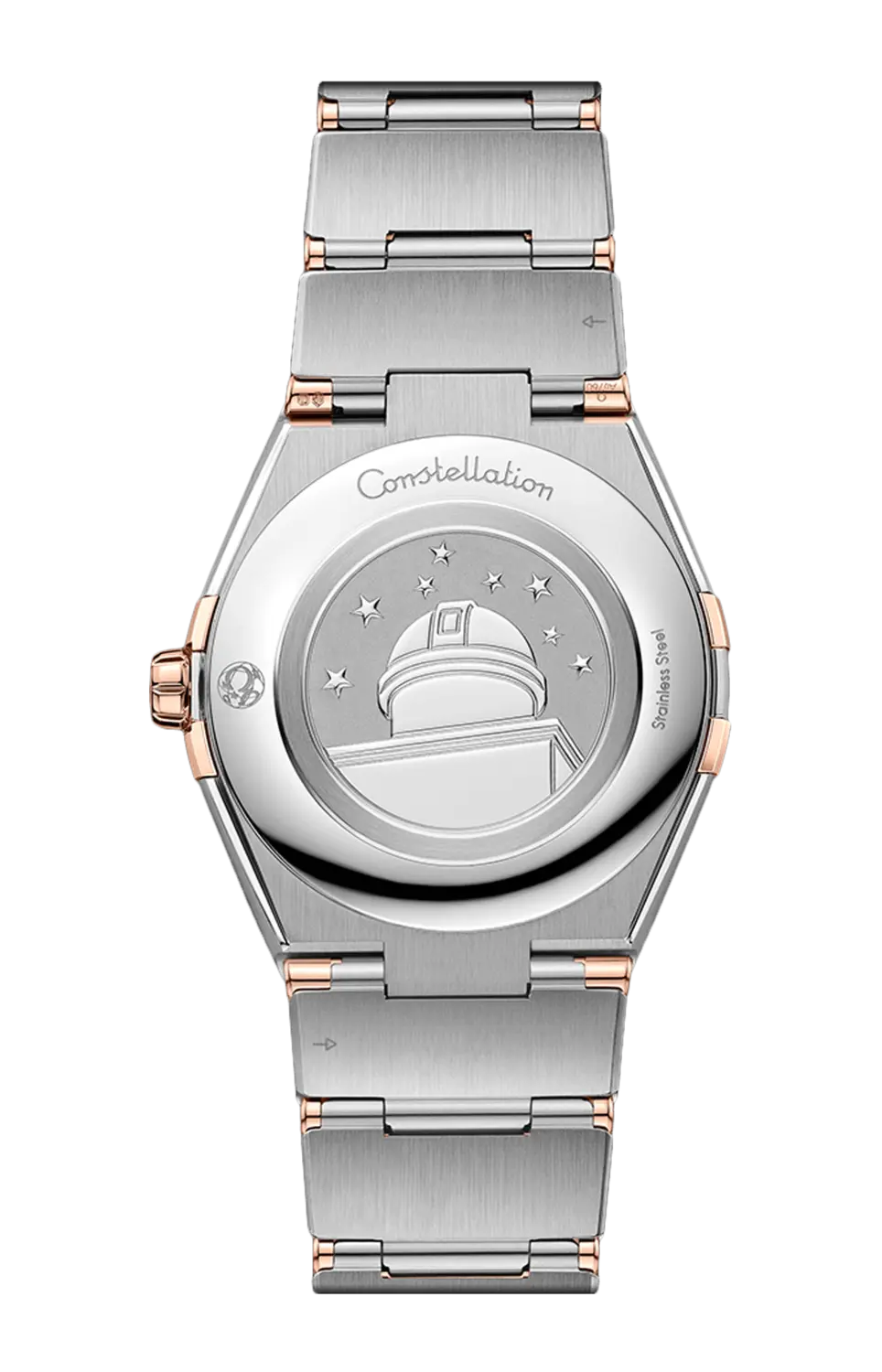 Бренд: Omega Необычный дизайн коллекции Omega Constellation, рассчитанный на долгие годы, характеризуется знаменитыми полумесяцами, «зубцами» на корпусе и браслетами «монозвонок». Эта модель диаметром 36 мм из нержавеющей стали и 18-каратного золота sedna. безель с выгравированными римскими цифрами, серебристо-кремовый циферблат с шелковистым тиснением и окошком даты в положении «6 часов». Циферблаты также выполнены из 18-каратного золота седны. стрелки, логотип Omega, звезда Constellation и индексы. Часы бьются в ритме калибра Omega 4564, заключенного в матовую заднюю крышку с тиснением, на которой изображен медальон Constellation с изображением обсерватории.