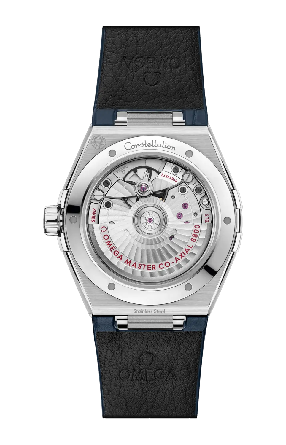 Бренд: Omega Необычный дизайн коллекции Omega Constellation, рассчитанный на долгие годы, характеризуется знаменитыми полумесяцами и «зубцами» по бокам корпуса. Эта модель из нержавеющей стали диаметром 39 мм оснащена безелем с воронеными римскими цифрами серого цвета. циферблат из рутения с горизонтальной сатинированной отделкой и окошком даты в положении «6 часов». Стрелки, логотип Omega, звезда созвездия и индексы вороненые. Часы с синим кожаным ремешком бьются в ритме коаксиального хронометра Omega Co-Axial Master Chronometer калибра 8800, который виден сквозь устойчивое к царапинам куполообразное сапфировое стекло.