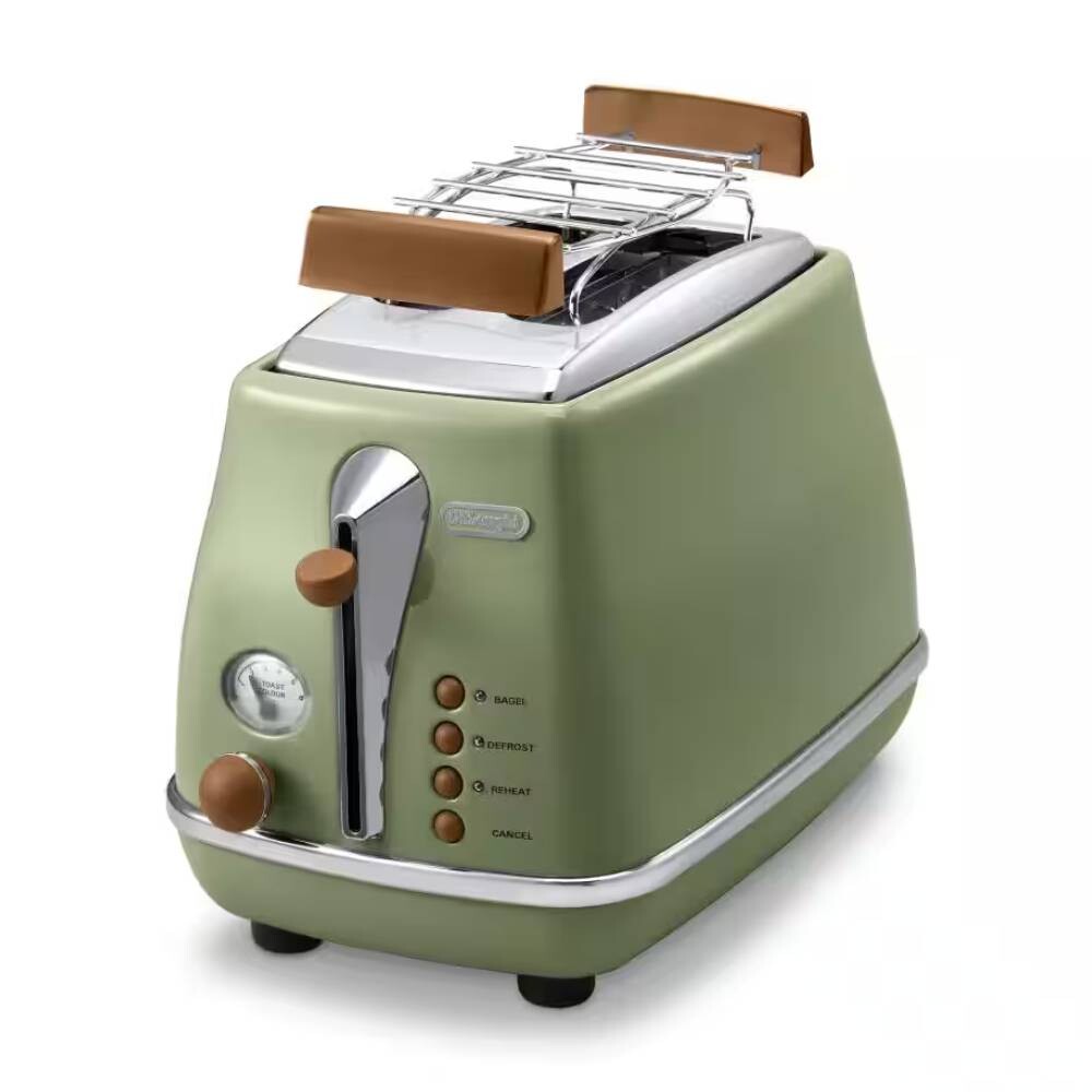 Тостер DeLonghi CTOV2103.GR обеспечит владельца вкусным завтраком по утрам. Повышенная мощность (900 Вт) – основное его преимущество. Корпус тостера произведен из прочного металла, окрашенного в зеленый цвет, с серебристыми декоративными элементами и коричневыми кнопками управления.