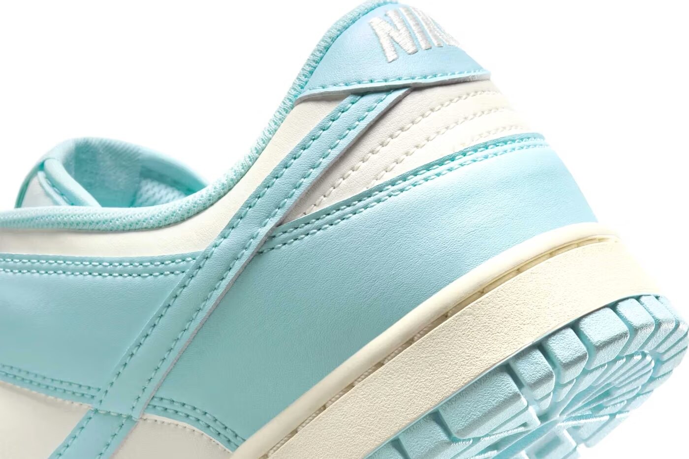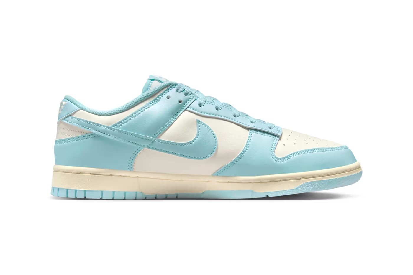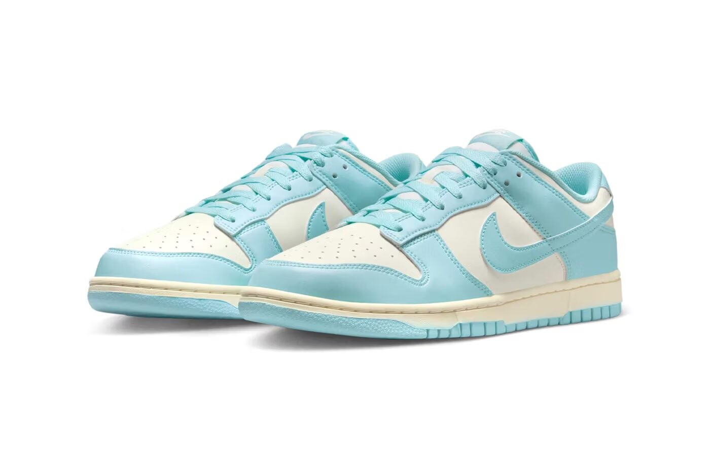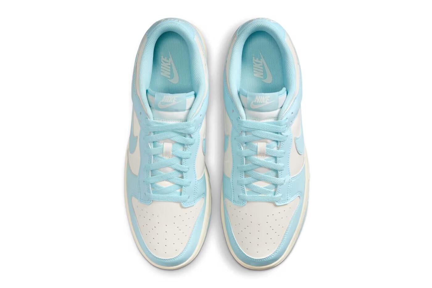 Nike Dunk Low «Glacier Blue Pale Ivory» - это небелый верх из гладкой кожи с ледяными синими накладками и подобранным по цвету логотипом Swoosh. Брендинг Nike украшает тканый язычок, носок и задник. Низкие кроссовки установлены на прочную резиновую подошву с прошитыми боковыми стенками и внутренним клином из пеноматериала. Резиновая подошва имеет сцепление с поверхностью, изначально разработанное для передвижения по твердой поверхности.