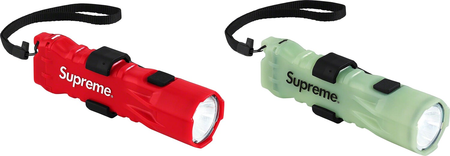 Фонарик из поликарбоната. Работает до 202 часов на низком уровне. Погружается на глубину до 1 метра. Размер 15,6 см. Изготовлен эксклюзивно для Supreme.