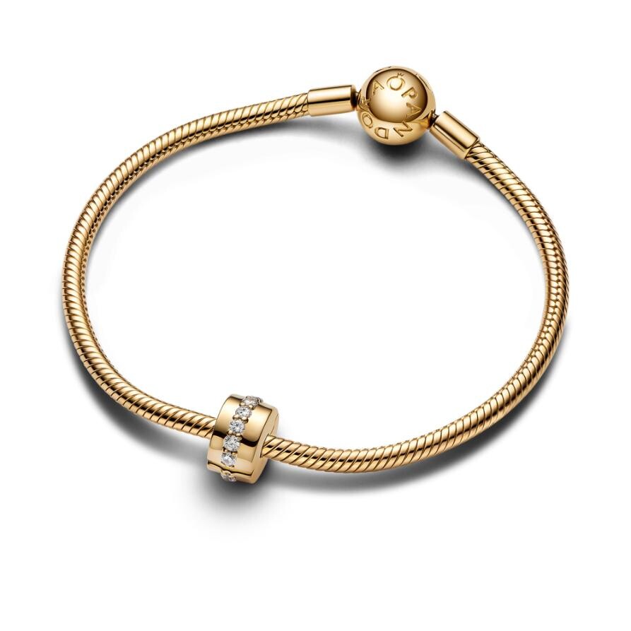 Шарм Clear Sparkling Row Clip Pandora, покрытие - золото