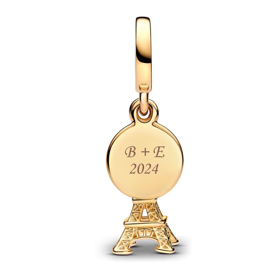 Носите с собой частичку Парижа, куда бы вы ни пошли, с подвеской Paris Eiffel Tower Lab-Grown Diamond Engravable Double Dangle Charm. Выращенный в лаборатории бриллиант сверкает на вершине этой крошечной, искусно детализированной копии культовой Эйфелевой башни. Вторая подвеска представляет собой диск с гравировкой «Париж» и полированной обратной стороной, готовой для вашей персональной гравировки. Эта подвеска Eiffel Tower привнесет французский колорит в ваш образ.