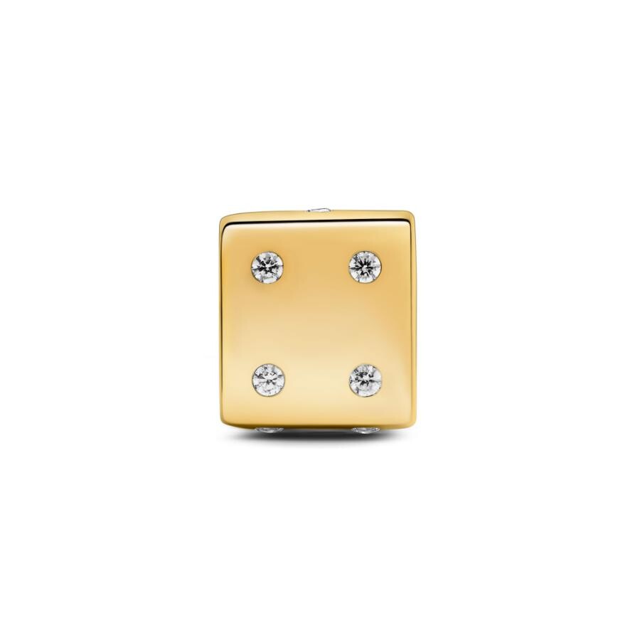 Добавьте игривости в свою коллекцию с помощью шарма Sparkling Dice Charm. Этот шарм Pandora Dice Charm, покрытый блестящим 14-каратным золотом, украшен замысловато оправленными прозрачными кубическими циркониевыми камнями, представляющими классические игральные кости. С гранями, демонстрирующими цифры один, четыре, шесть и три, этот шарм приглашает вас принять непредсказуемость жизни. Бросайте кубики и не упускайте возможность, ведь в каждой искорке кроется волнение случая и надежда на что-то необыкновенное.
