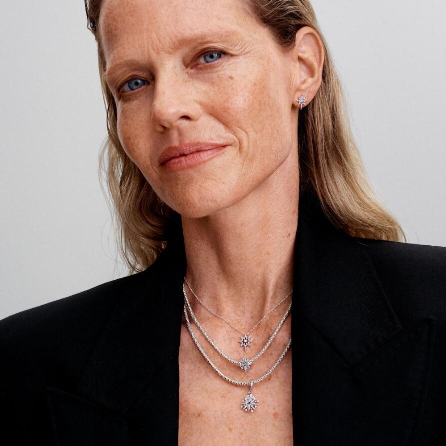 Осветите свой образ с нашим ожерельем с подвеской North Star из стерлингового серебра. Это ожерелье с символическим дизайном Полярной звезды, сияющей прозрачными кубическими цирконами из классической цепочки-кабеля, добавит небесного сияния вашему образу с помощью слоя значимой символики. Цепочку можно отрегулировать на три разные длины в соответствии с вашим стилем. Выступая в качестве компаса в неопределенные времена, North Star направляет нас к более светлому завтра и олицетворяет наши надежды и мечты. Носите, чтобы добавить блеска любому праздничному образу, или подарите его сияющей звезде вашей жизни.