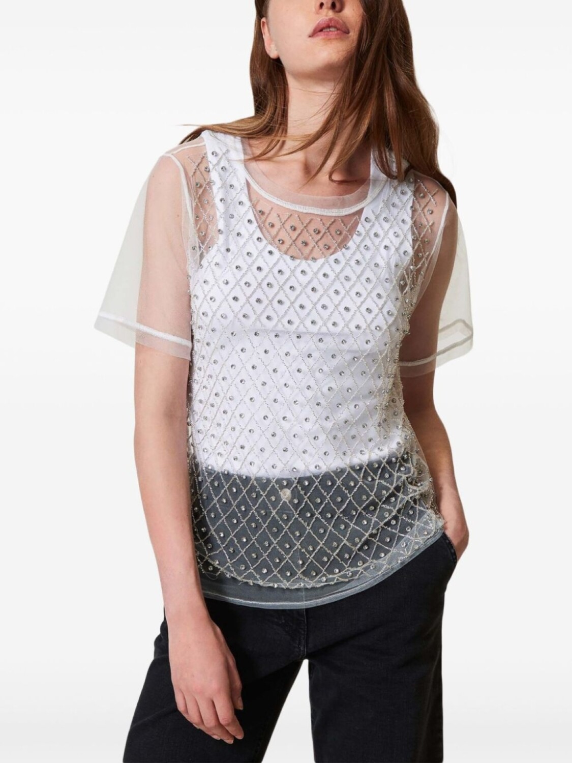 TWINSET футболка с вышивкой, белый