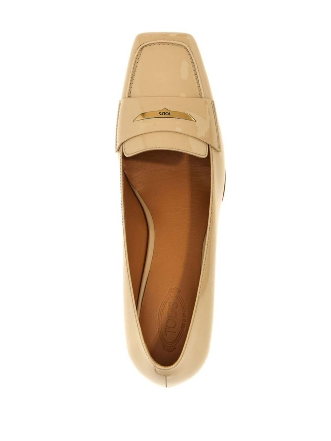 Бежевый, кожаная стелька с логотипом, низкий блочный каблук, прорези на язычке, выгравированный логотип