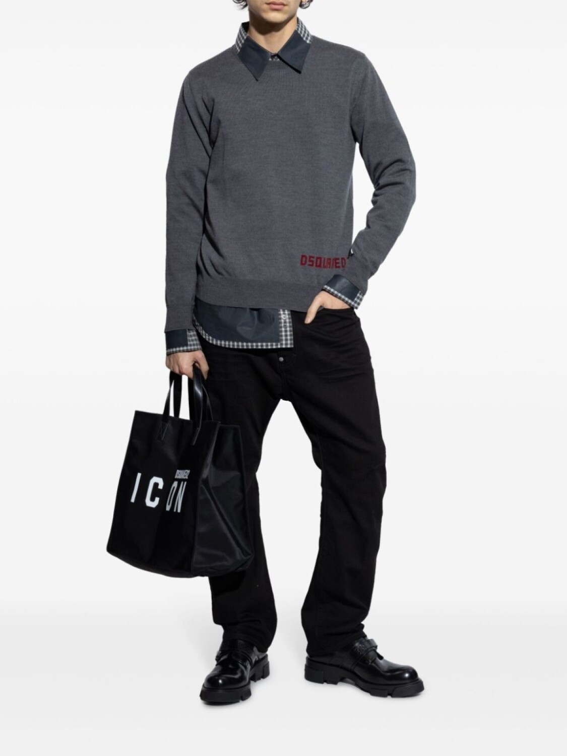 Джемпер с логотипом DSQUARED2, вязка интарсией, серый
