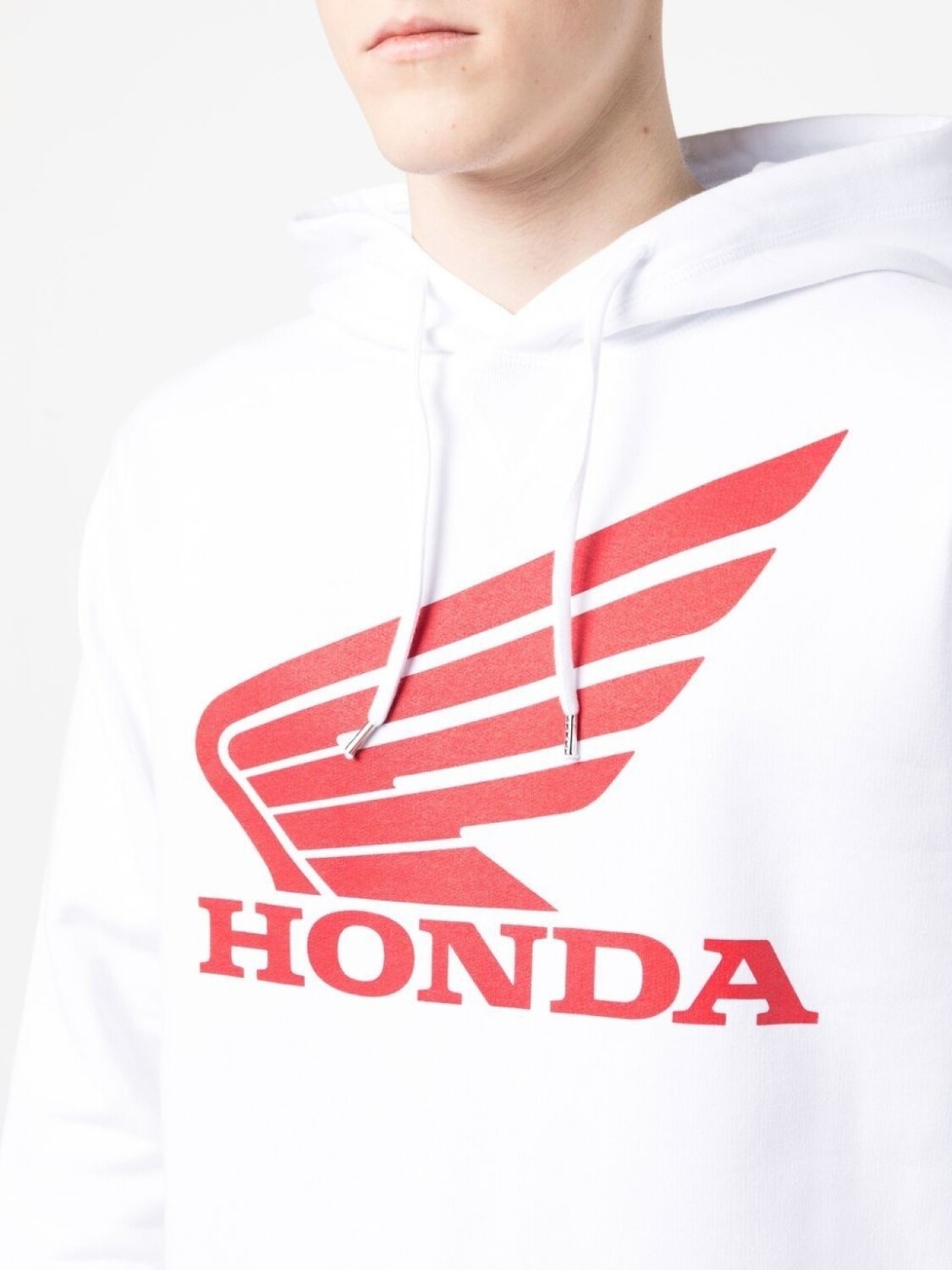 Белый, красный, хлопок, принт на груди, классический капюшон и длинные рукава.