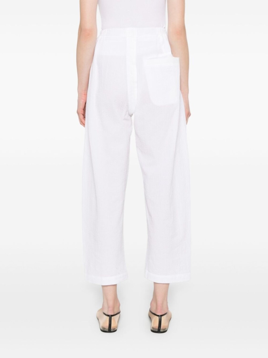 Белый, эластичный пояс, задний карман с листочкой, сирсакер, укороченная длина