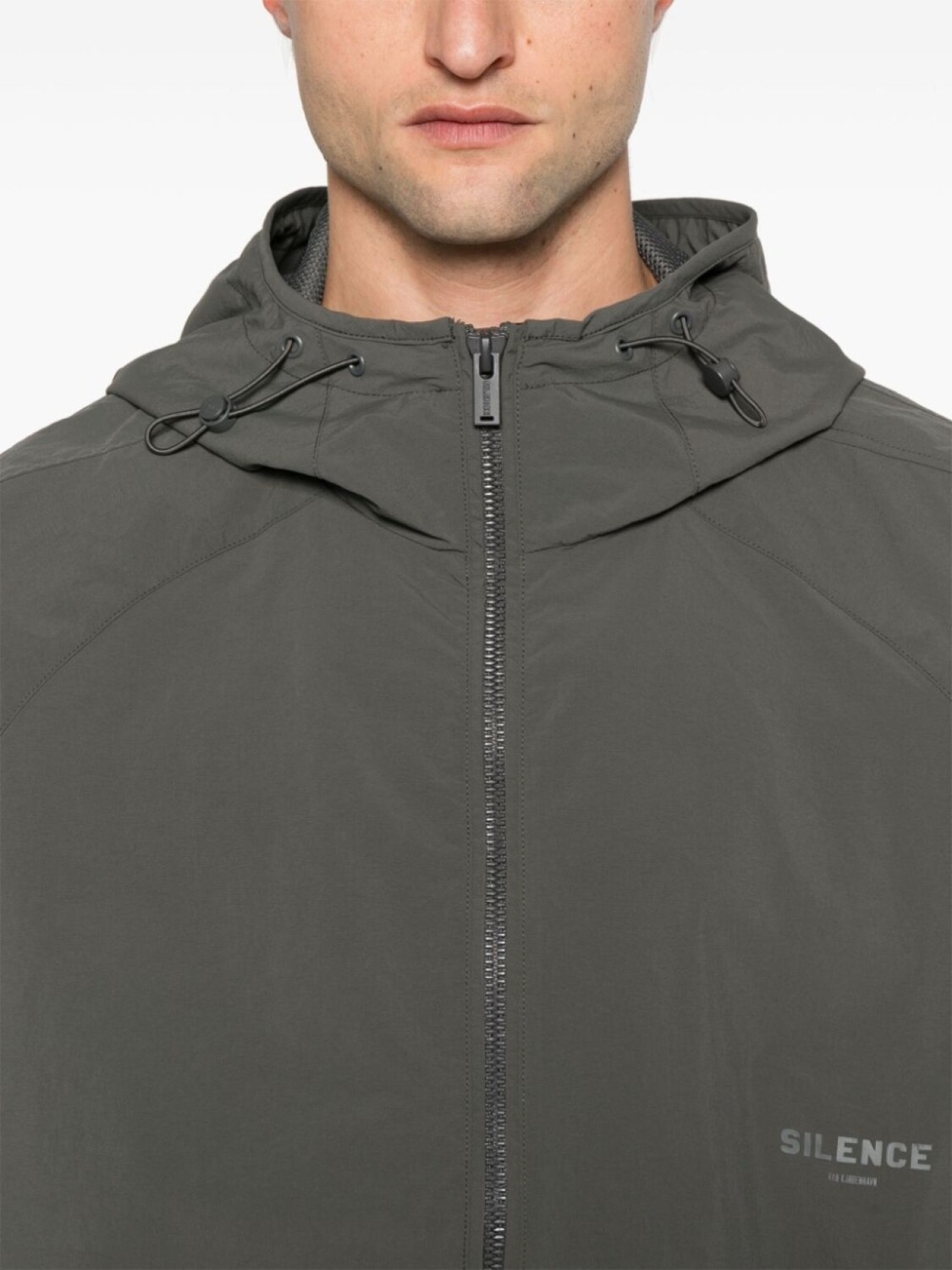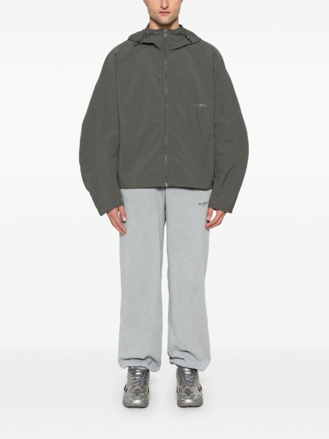 Пепельно-серая застежка-молния спереди, капюшон на шнурке, два боковых кармана на молнии. При покупке этой вещи унисекс имейте в виду, что она имеет стандартные мужские размеры.