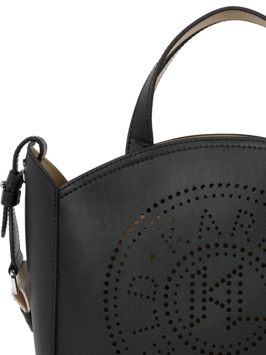 Подробнее о товаре: • черный/белый • телячья кожа • гладкая текстура кожи • перфорация • серебристая фурнитура • серебристый логотип • потайная застежка на магните • две плоские верхние ручки • съемный ремень на плечо с логотипом • основное отделение • внутренний карман на молнии • Кожа в составе этого товара сделана на фабрике, сертифицированной организациями Leather Working Group (LWG) или ICEC. Это гарантирует, что производитель минимизировал негативное влияние материала на окружающую среду.