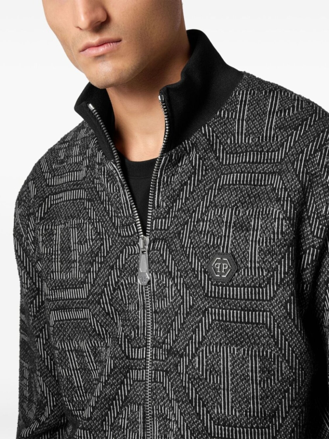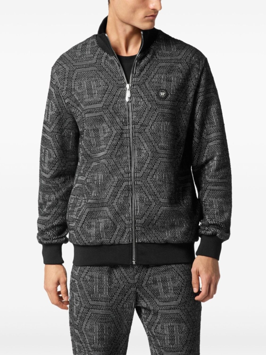 Куртка-бомбер с жаккардовым узором от Philipp Plein, черный