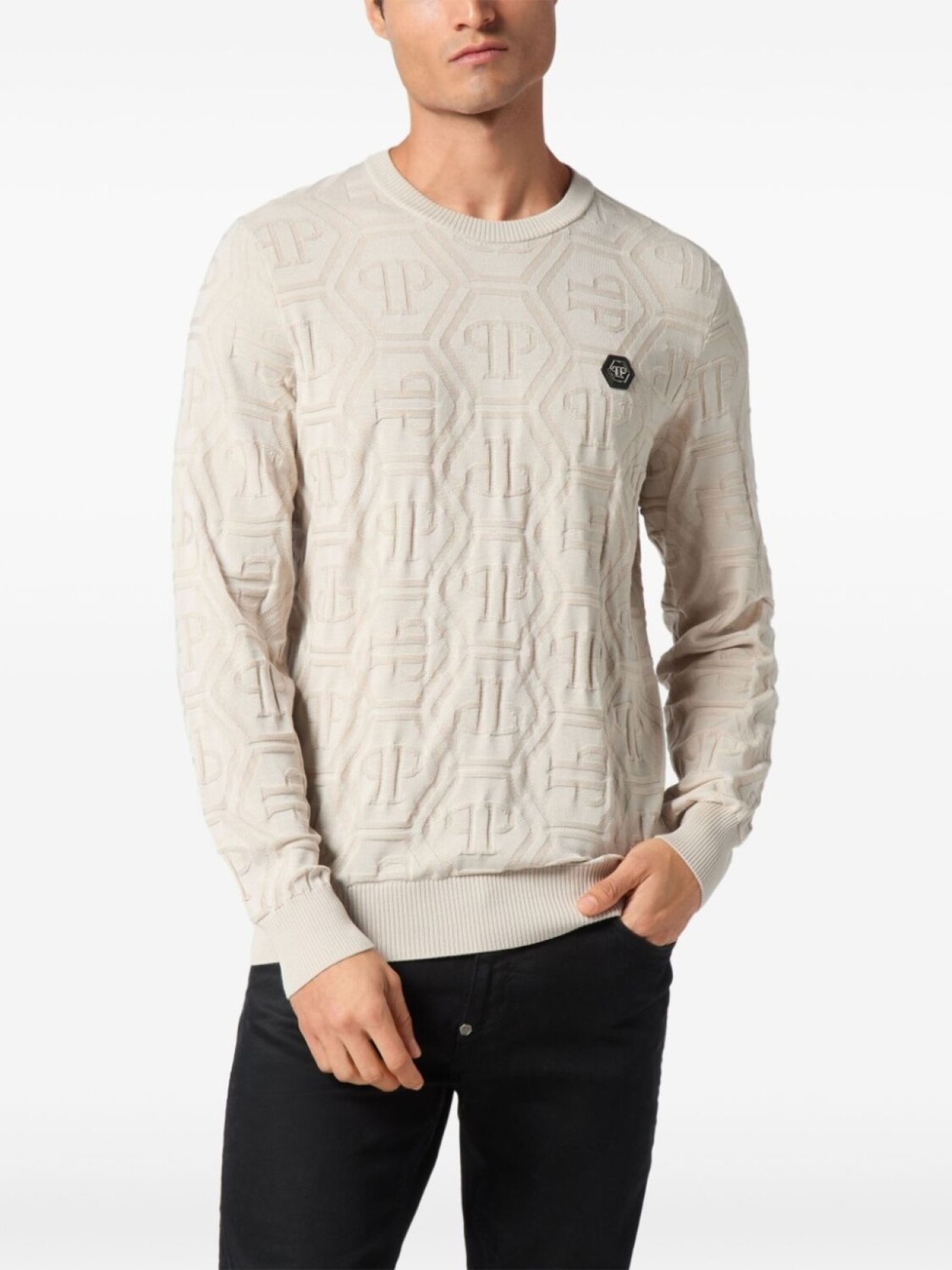 Жаккардовый свитер с логотипом Philipp Plein, нейтральный