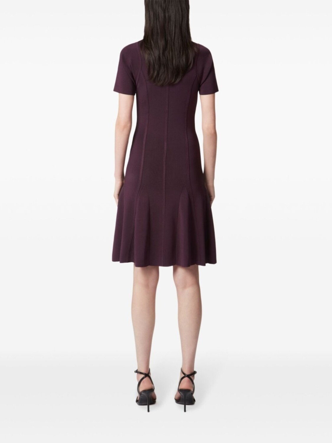 Бордовый, подол с баской, круглый вырез, короткие рукава, длина по колено