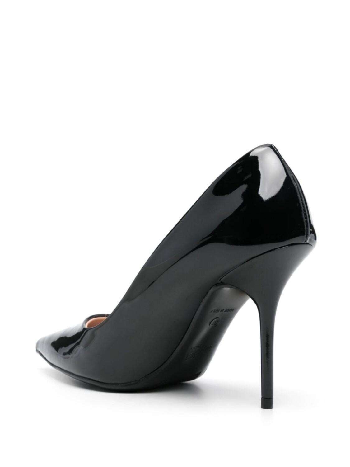 Черный, каблук на высокой шпильке, стелька с логотипом, заостренный носок