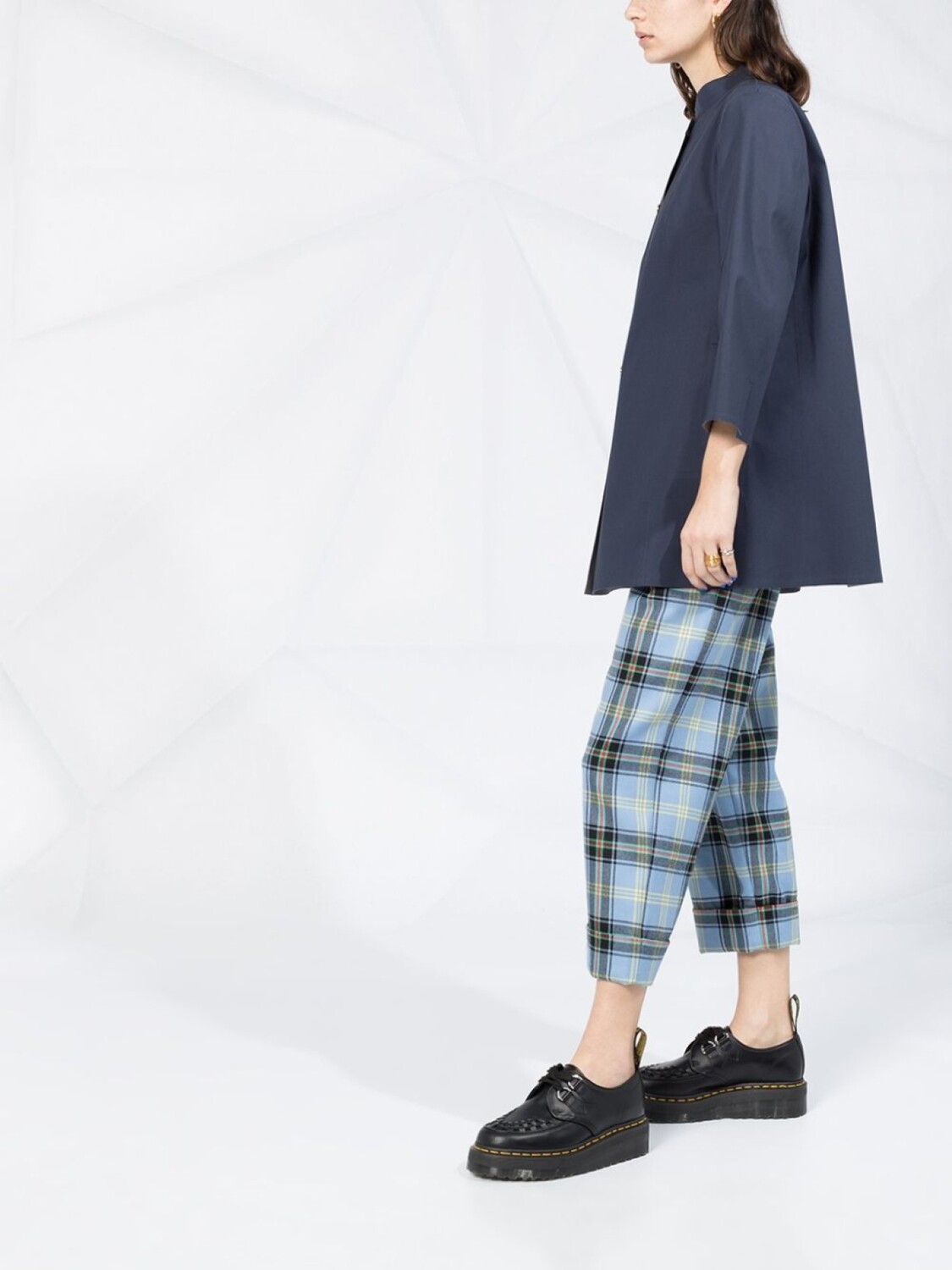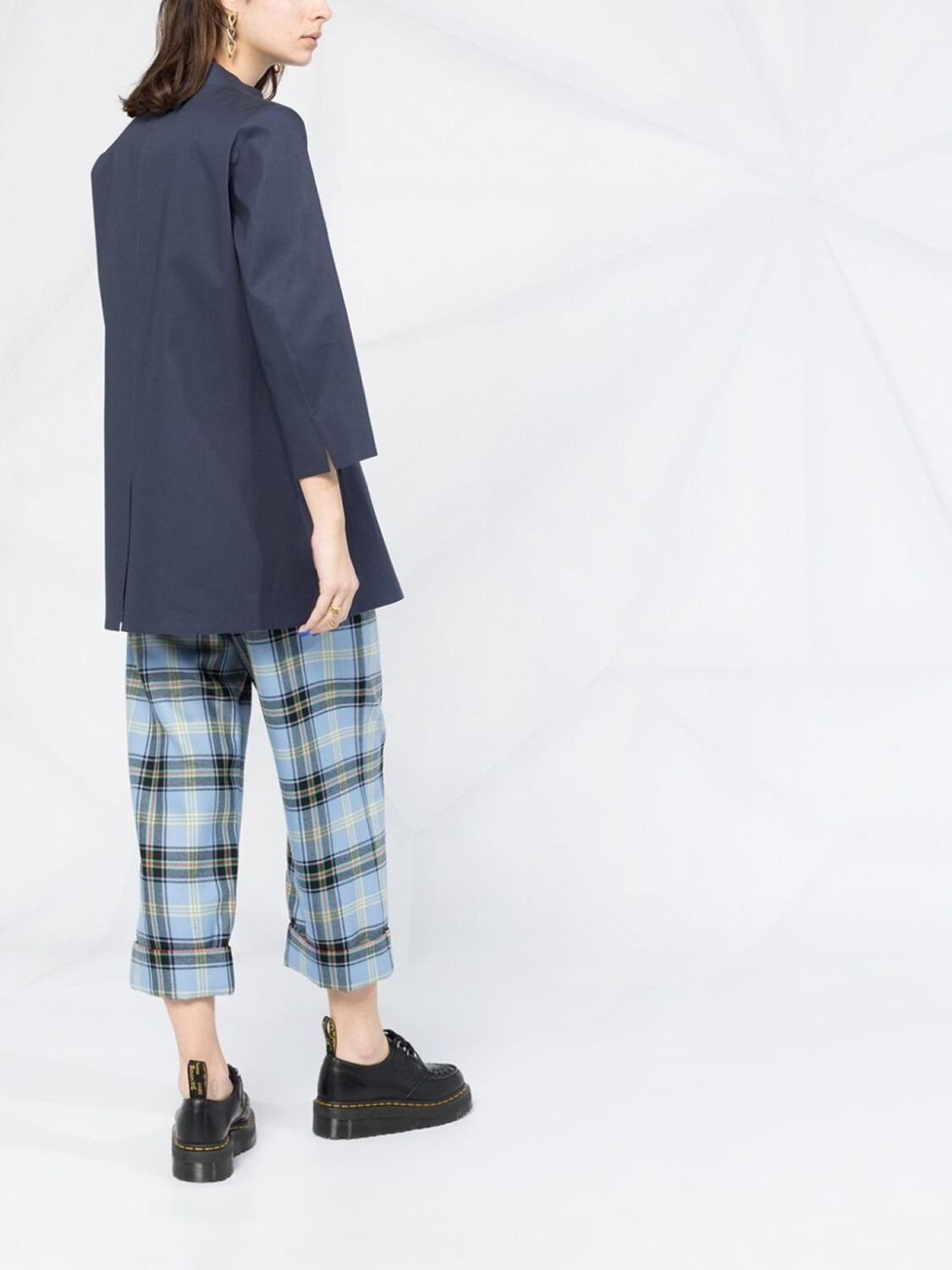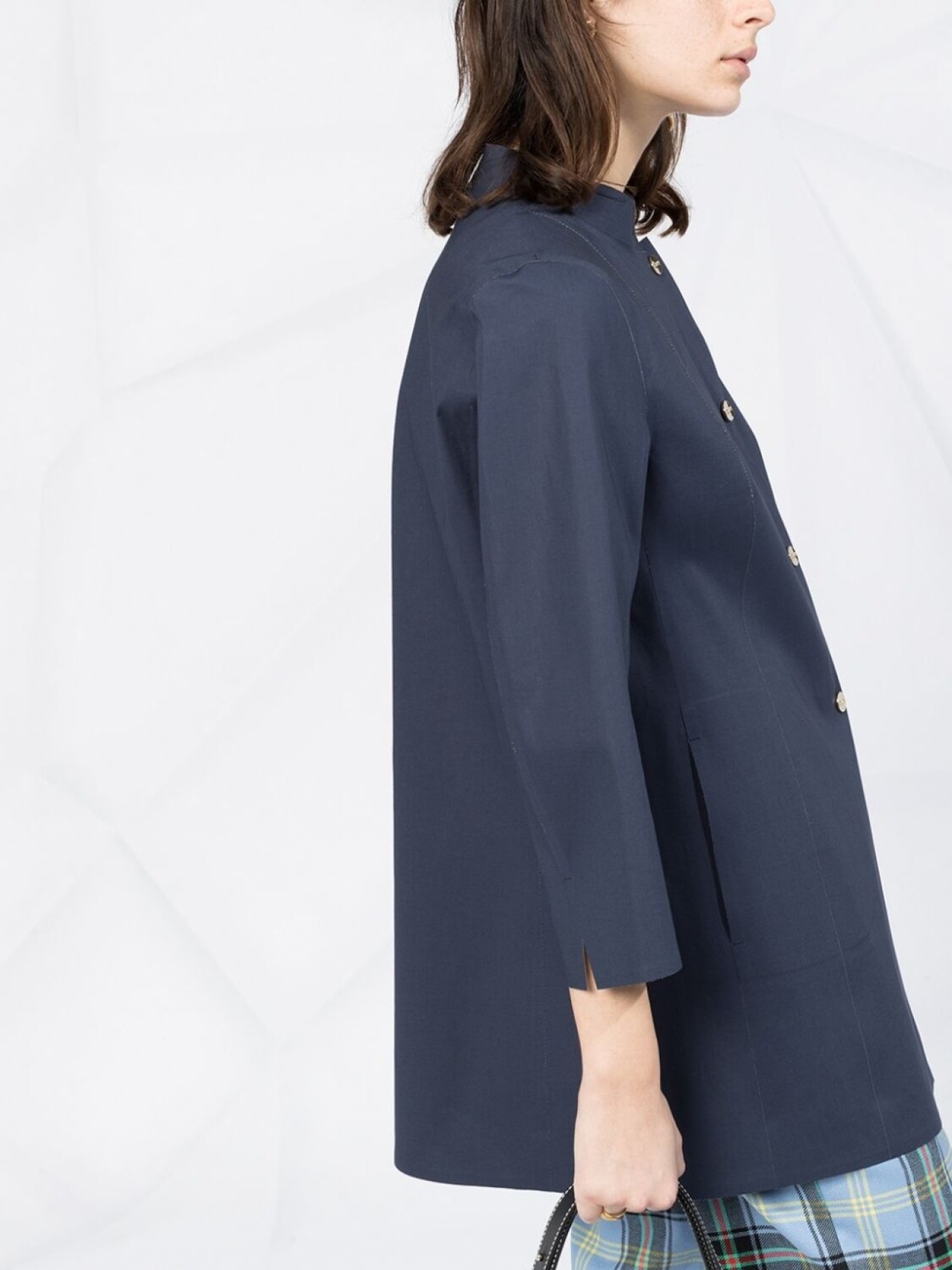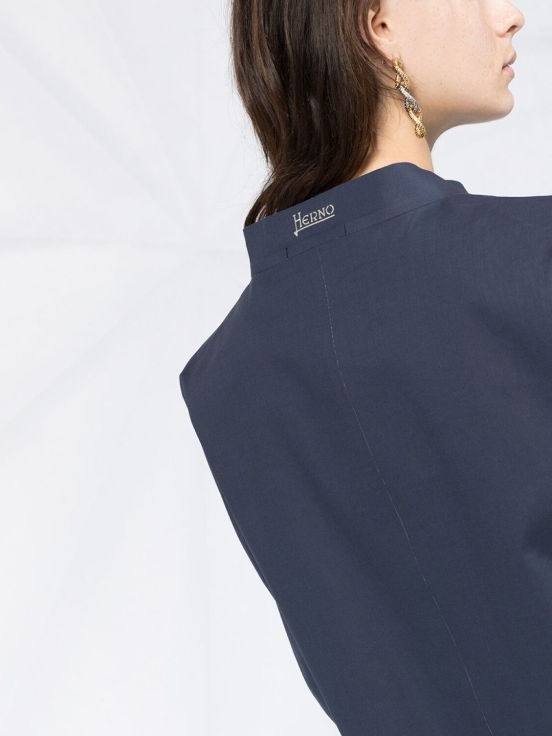 Жакет с воротником-стойкой и рукавами три четверти от Herno. Воротник-стойка, рукава три четверти, прорезные карманы по бокам, шлица сзади и застежка на кнопках.