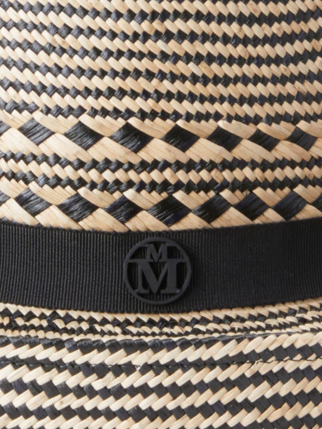 Бежевый, солома, переплетенный дизайн, плоская тулья, металлический логотип, детали в рубчик, широкие подвернутые поля