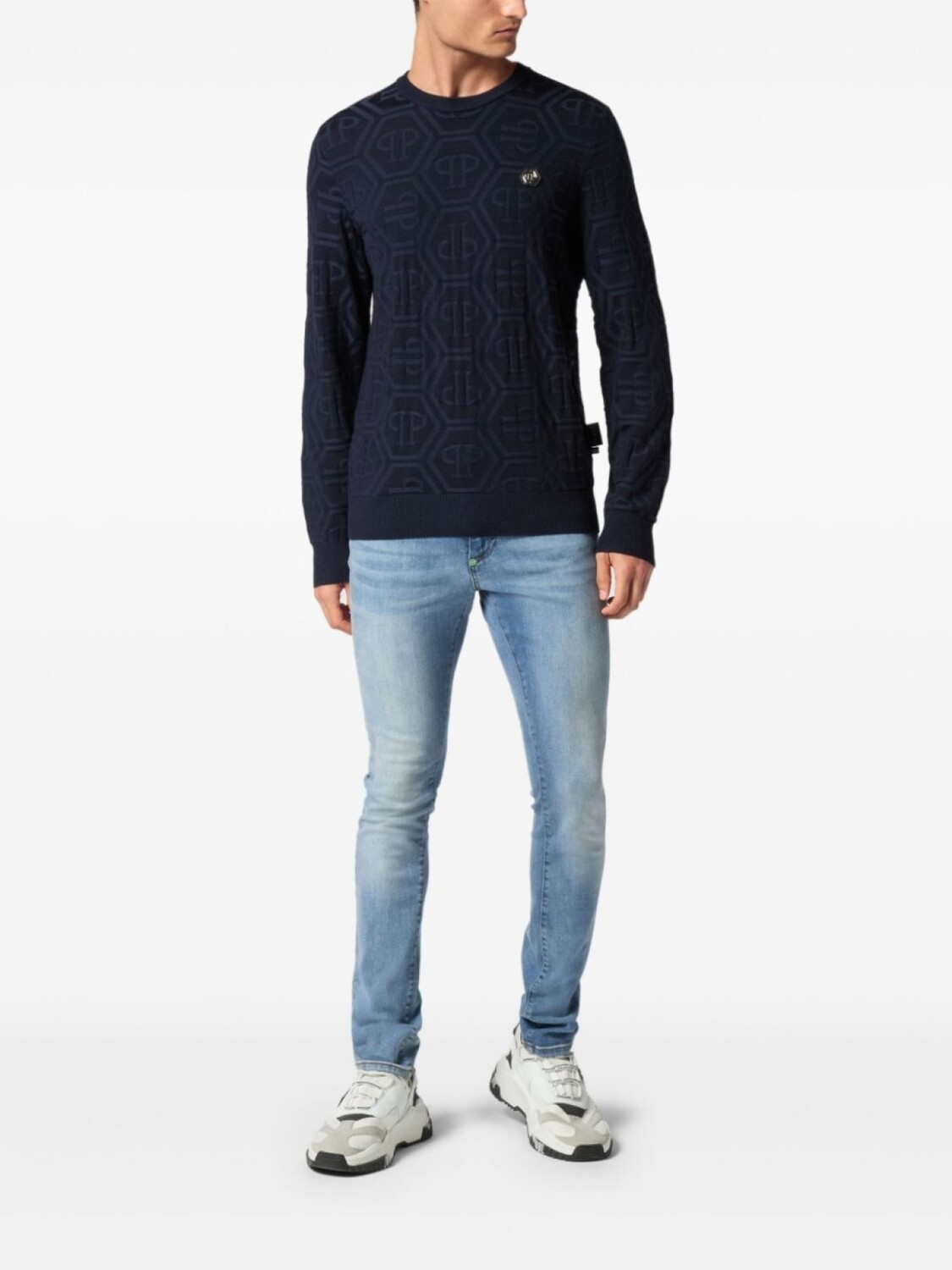 Свитер с жаккардовым узором от Philipp Plein, синий