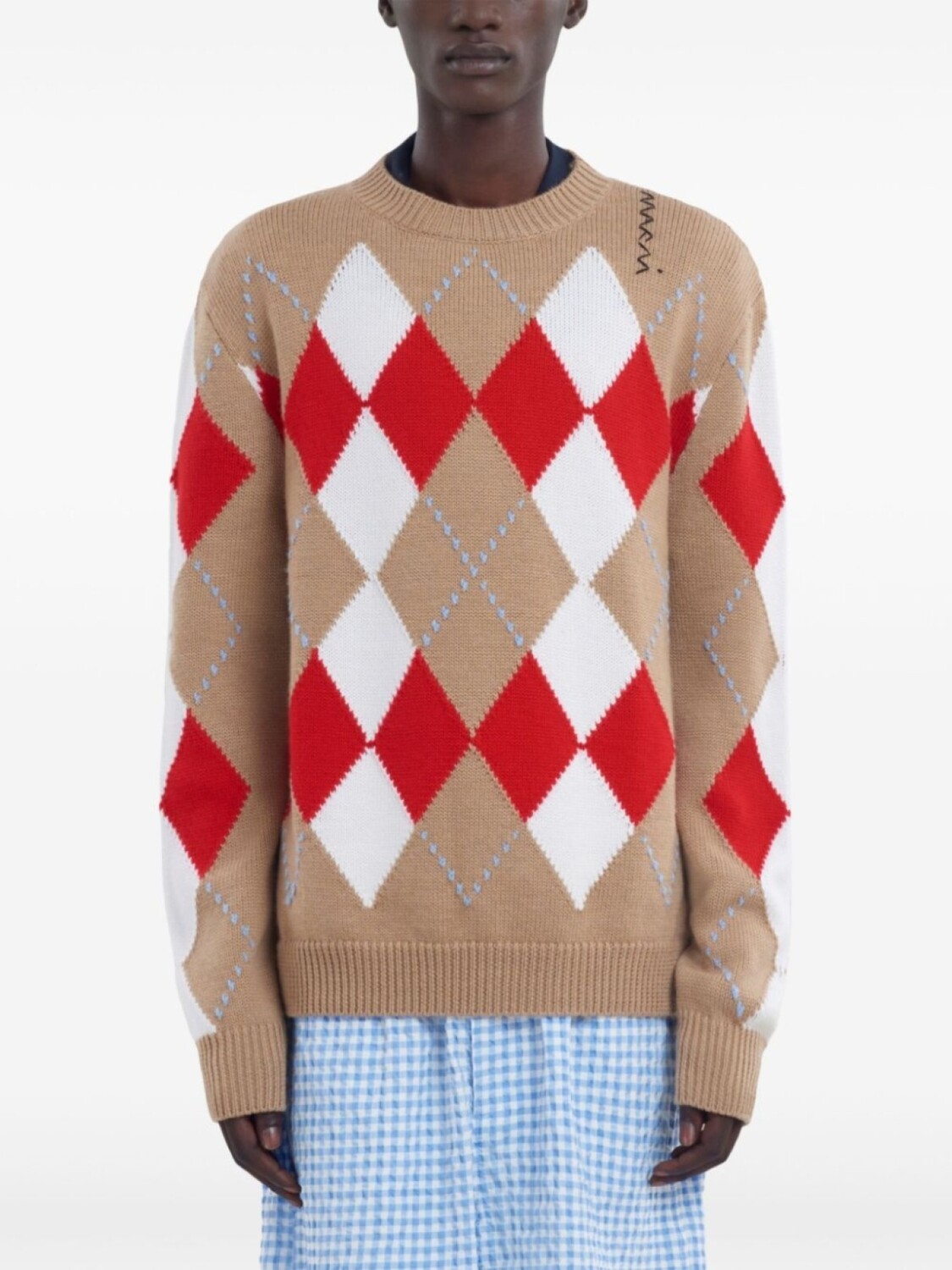 Marni джемпер с узором аргайл, нейтральный