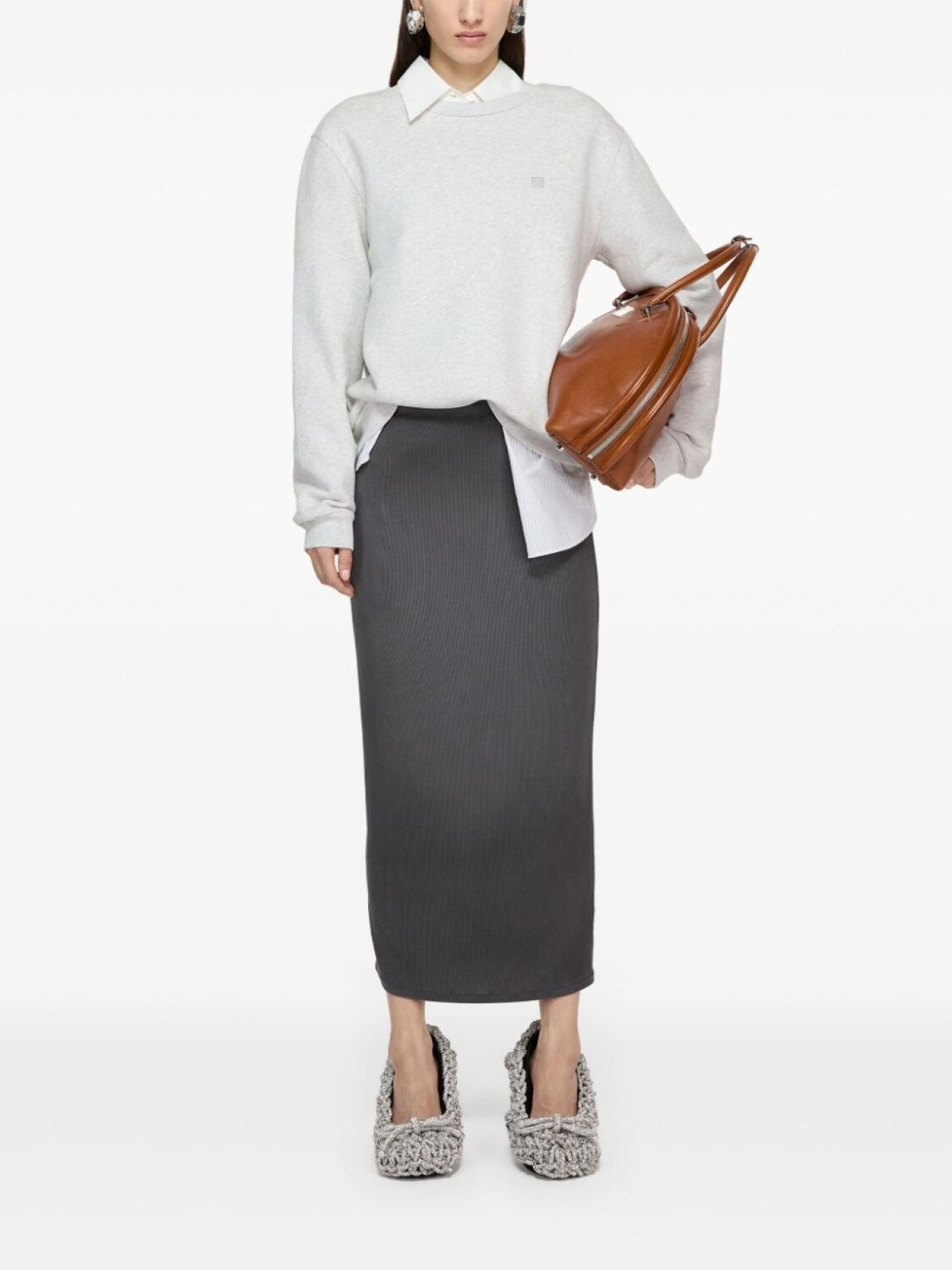 Флисовая толстовка с круглым вырезом Acne Studios, серый 42 570₽