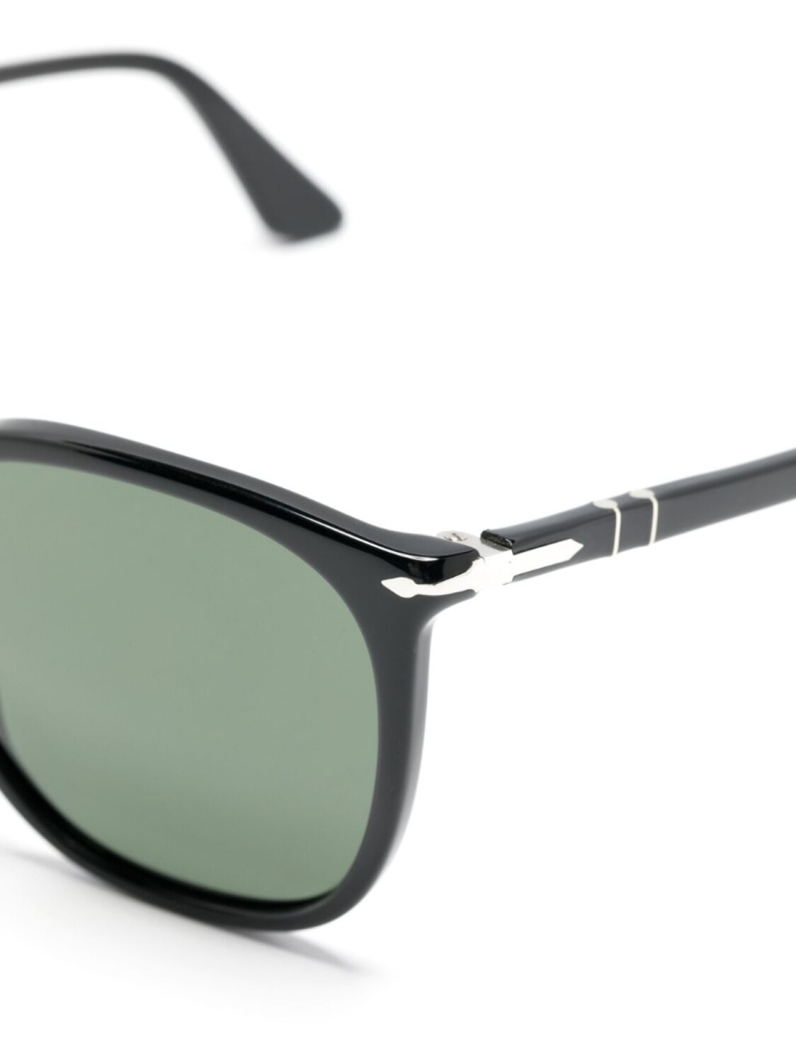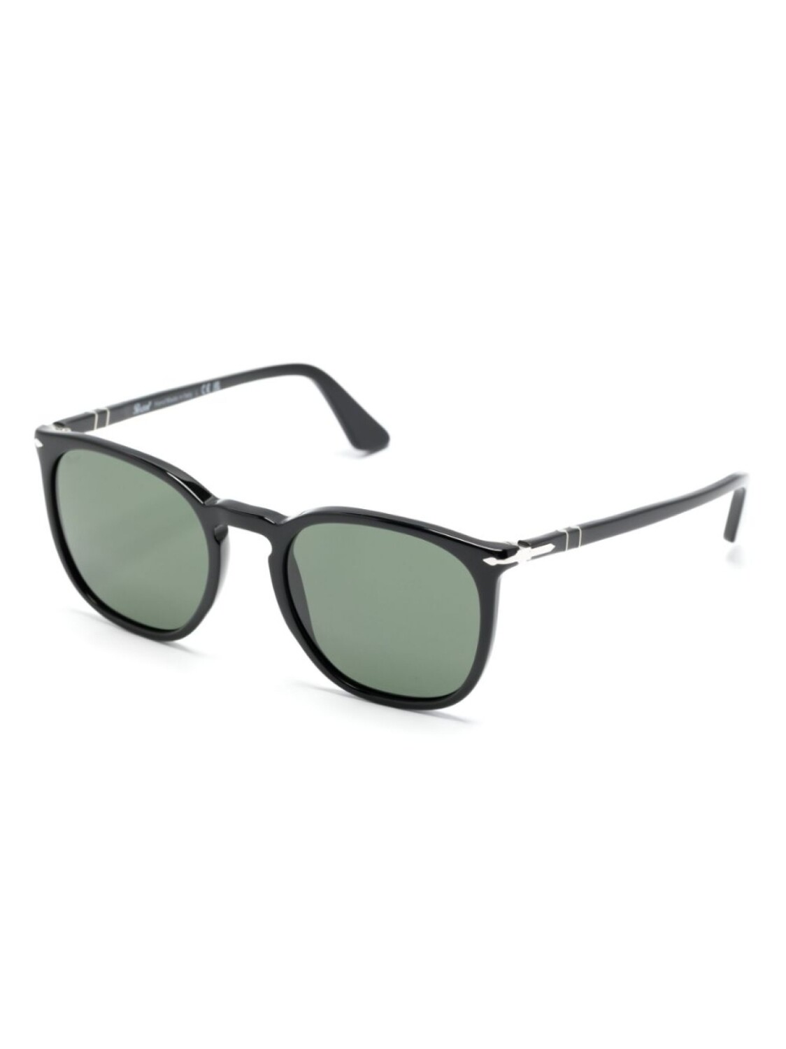 Черный, ацетат, круглая оправа, затемненные линзы зеленого цвета, прямой подол и дужки с закругленными концами. В комплект входит защитный чехол для очков.