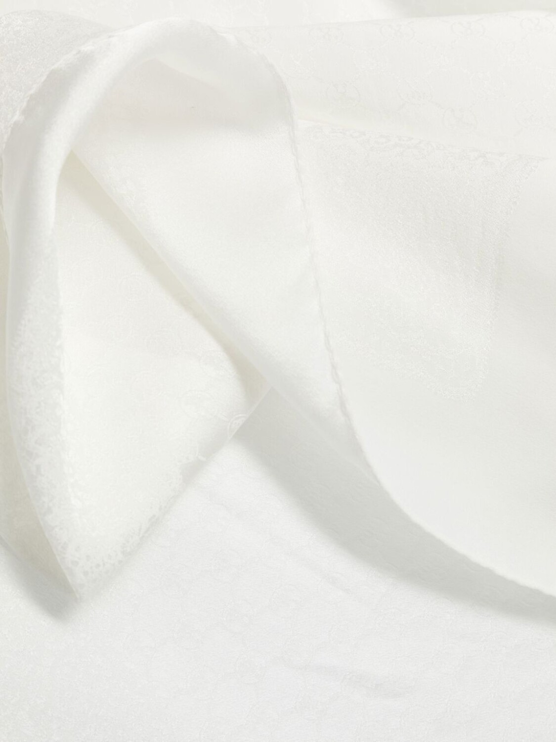 Расцветка Cloud White, шелк, узор с изображением монограммы, обработанные края, длинная модель и несколько оборотов.