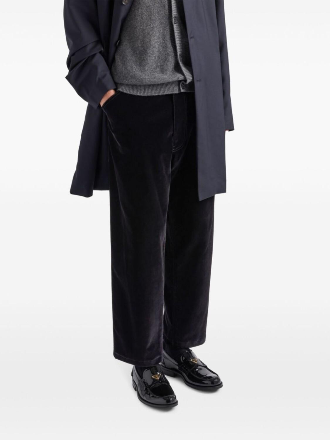 Необработанная обработка Свободный крой Стандартная талия Подол 22 см, размер M Застежка на молнию и крючок спереди Соответствующая строчка Общая длина 100 см, размер M Треугольный логотип Косые высокие карманы с передним карманом Накладные карманы, один с клапаном и пуговицей сзади Хлопок
