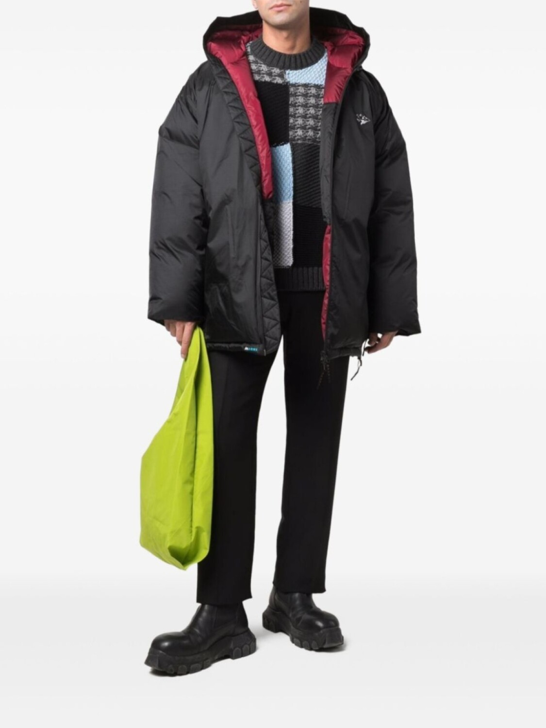 Черная двухсторонняя застежка-молния, два боковых кармана на молнии, классический капюшон, вышитый логотип на груди