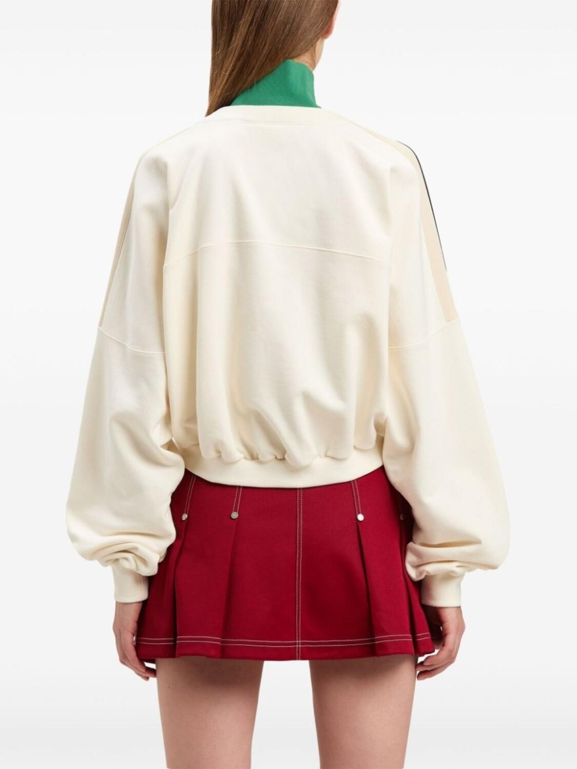 Белый, застежка на молнии спереди, V-образный вырез, длинные рукава