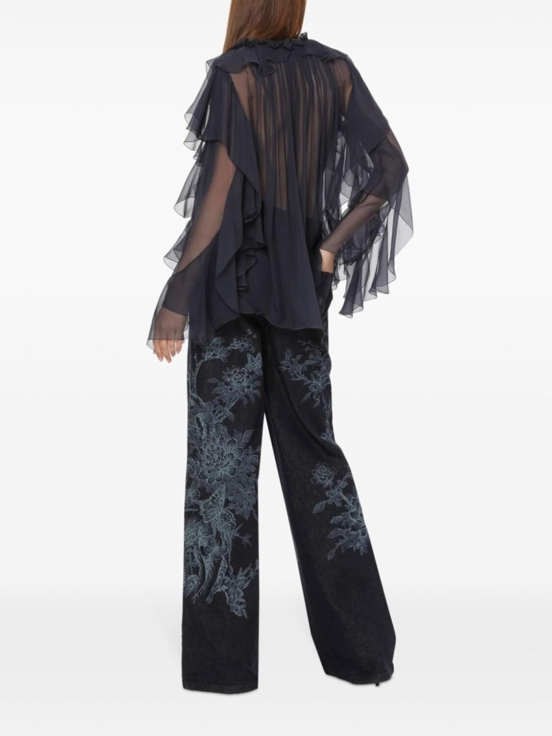 Alberta Ferretti шелковая блузка с оборками, синий
